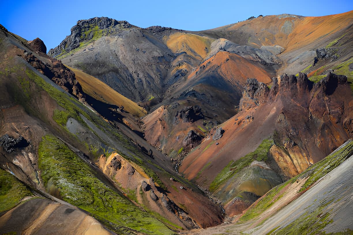 Your expert driver-guide will navigate deep into the heart of Landmannalaugar, where rainbow-colored rhyolite mountains and steaming geothermal rivers await. Take a scenic hike or relax in a natural hot spring, surrounded by lava fields and untouched wilderness. Throughout the day, you'll visit lesser-known gems like Sigöldufoss, Hjálparfoss, and Frostastadavatn Lake — all in the comfort and safety of a specially modified 4x4 Super Jeep.