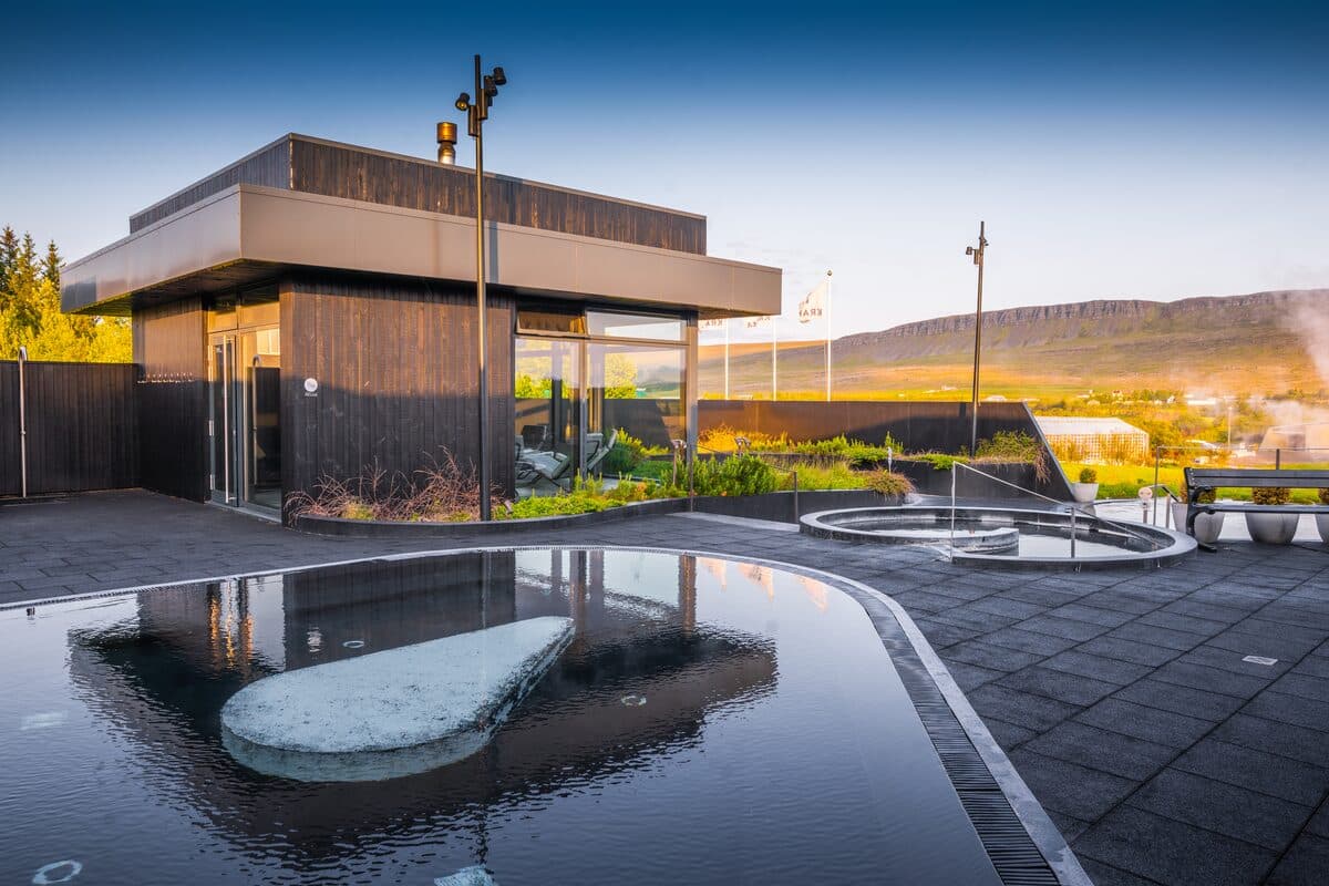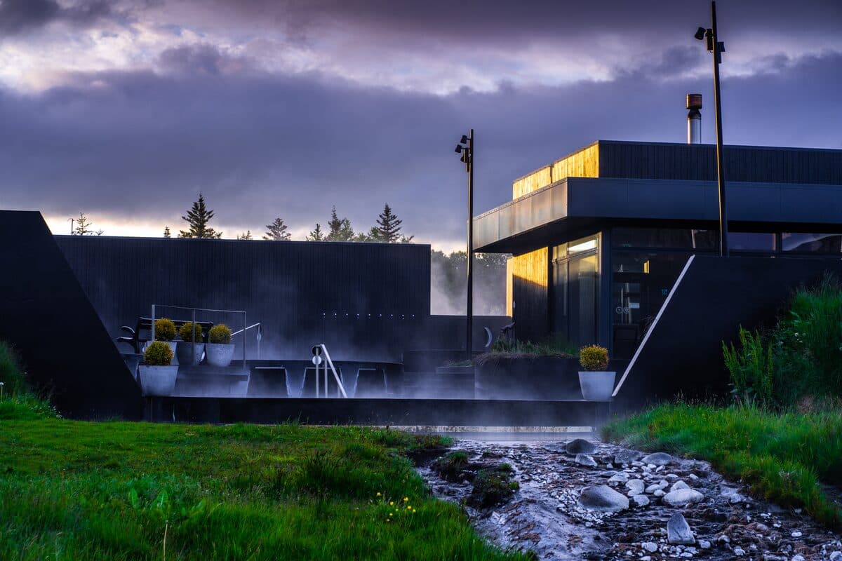 Walk through the spacious blue corridors, step into the built-in chapel, and learn about the glacier’s history. After exploring the world’s largest ice tunnel, let the geothermal waters of Krauma gently warm your body and ease your mind. Slip into the hot tubs, relax in the saunas, or rest in the quiet lounge while taking in the volcanic landscape around you.