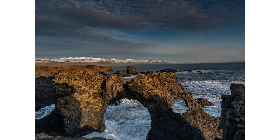 Set out on a spectacular journey across the Snæfellsnes Peninsula, often called “Iceland in Miniature” for its rich variety of landscapes. Begin with a stop at Berserkjahraun, a vast and ancient lava field shaped by volcanic eruptions and Viking legends. As your guide recounts the tale of the berserkers who gave the area its name, take in the rugged terrain, still wild and hauntingly beautiful. From there, continue to Kirkjufell, Iceland’s most photographed mountain. With its perfectly symmetrical shape and the nearby cascading waterfalls, it’s a dream setting for photography and storytelling alike.