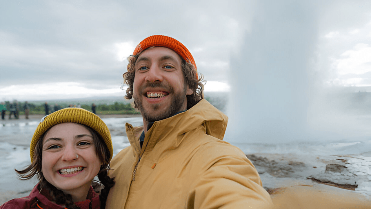 Your journey begins along the Golden Circle, visiting Þingvellir National Park, where Iceland’s history and geology meet. You’ll continue to the blue cascades of Brúarfoss, the active geothermal area of Geysir, and the powerful Gullfoss.