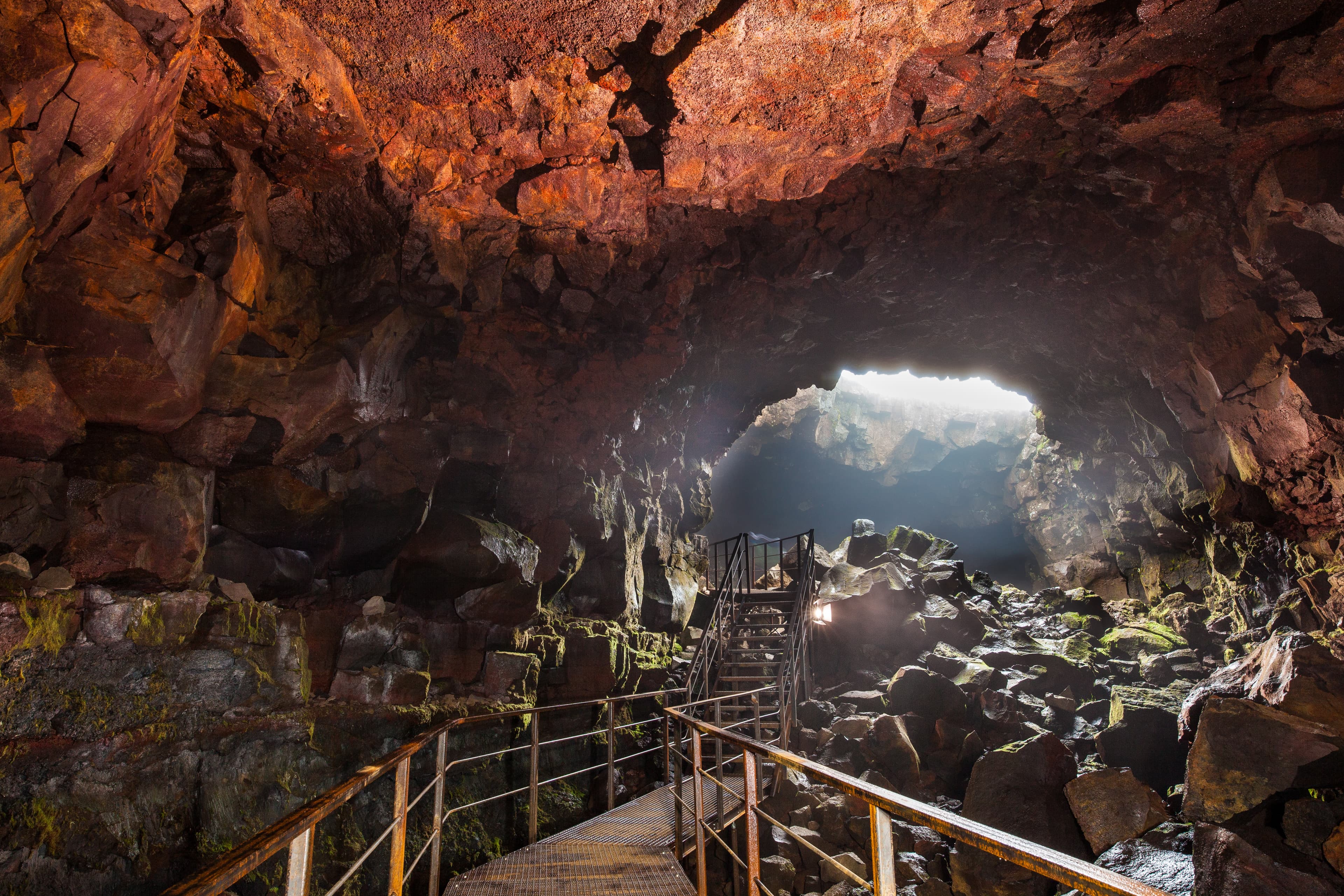 Raufarhólshellir, one of the longest and best-known lava tubes in Iceland. It