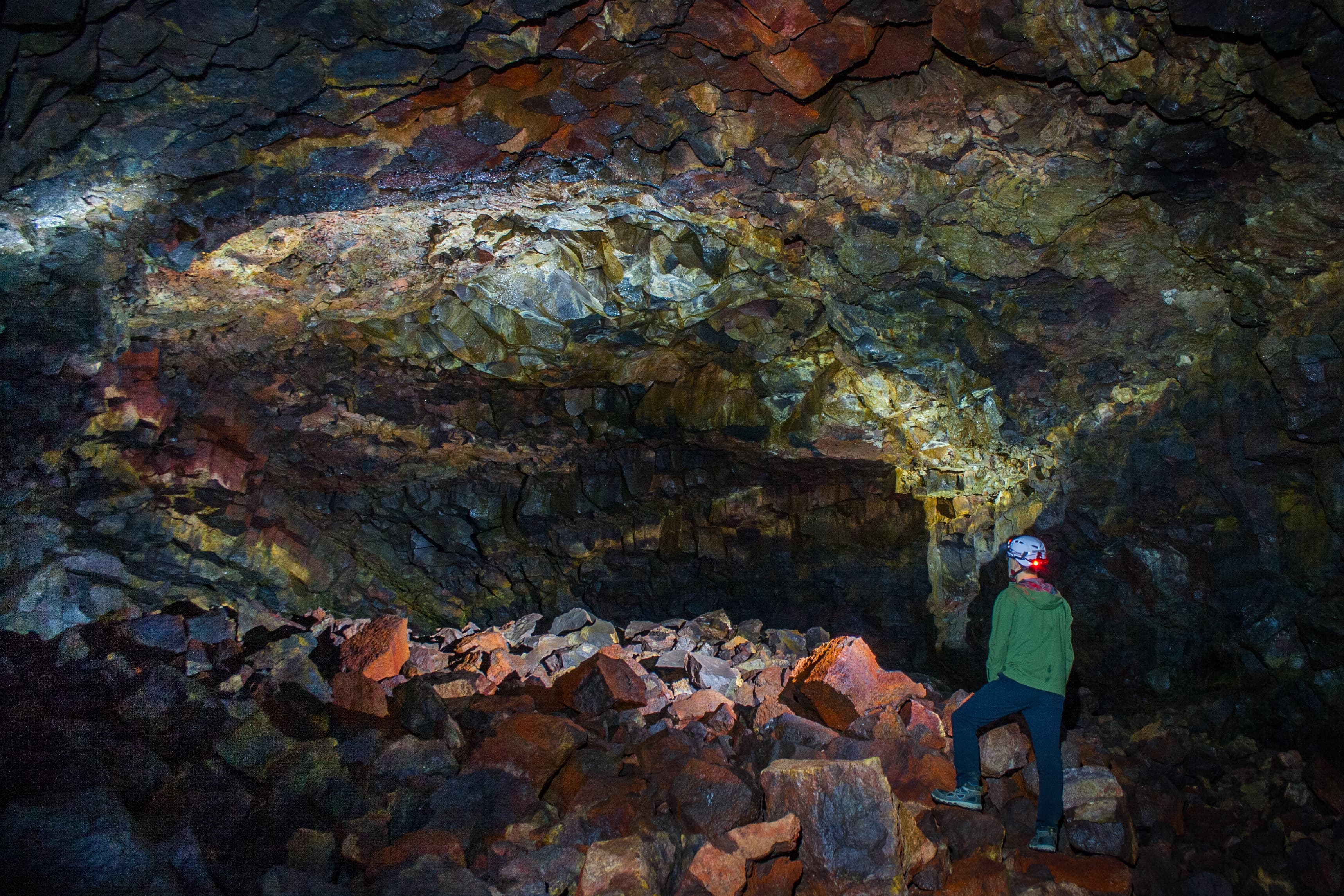 The Lava Falls Adventure Tour takes you off the beaten path and into the depths of The Lava Tunnel (also know to Icelanders as Raufarholshellir) to explore the source of the cave, the magnificent Lava Falls. The Adventure tour requires good fitness and balance. The tour traverses difficult terrain, including big rocks and boulders. It takes on average 3-4 hours to complete, relying on an experienced guide and head torches to navigate through this underground wonder. At the end of the cave you will experience breathtaking scenery as you will witness the origin on the lava flow that created the cave, which includes amazing lava falls rarely seen in the world.