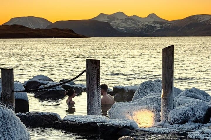 Upon arrival, you’ll be dropped off directly at the entrance and guided through check-in. Entrance to Hvammsvík Hot Springs is included, giving you full access to the natural hot springs, steam bath, changing facilities, and on-site bistro. You are free to enjoy the baths at your own pace, without time pressure.
