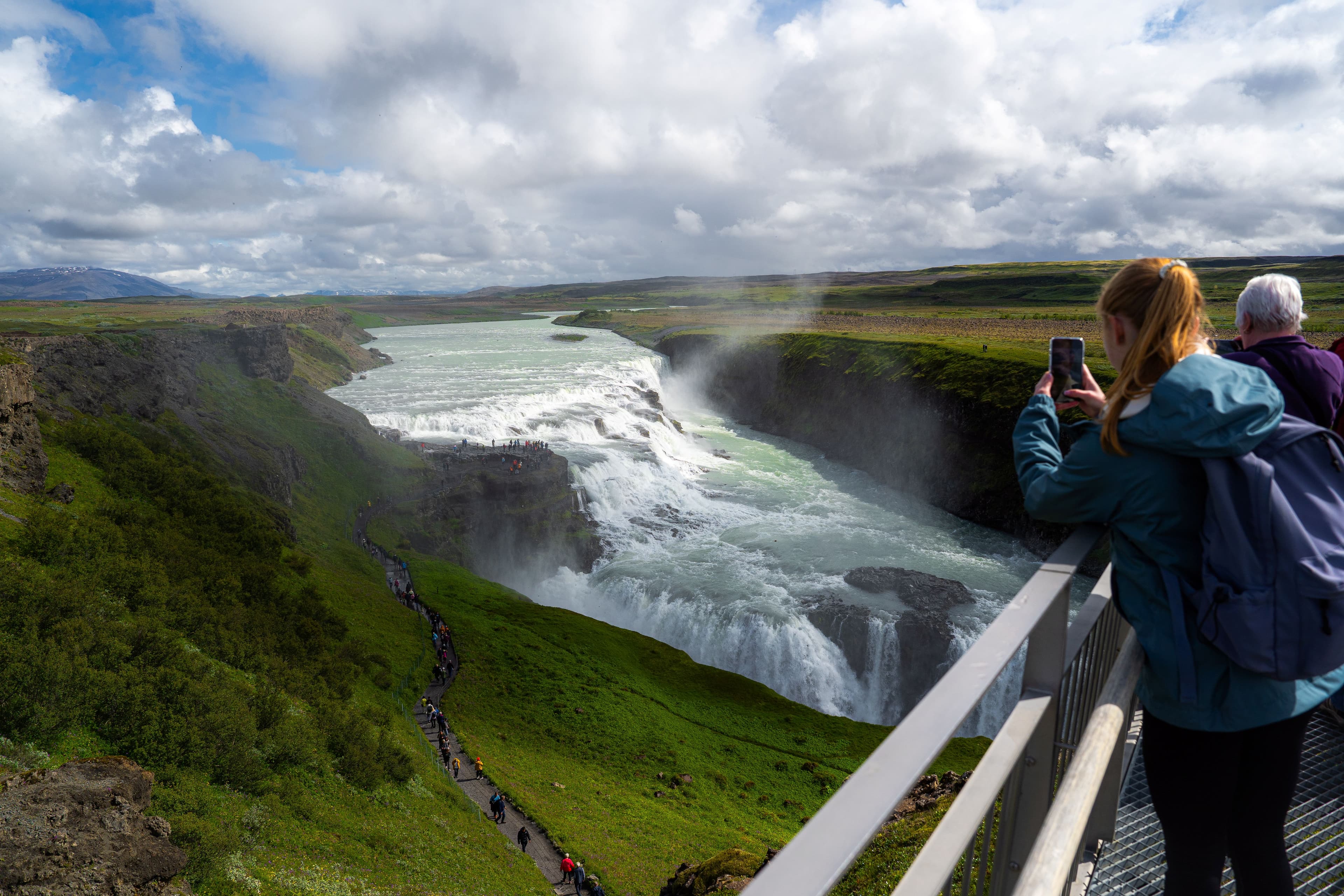 Continue to Gullfoss, one of Iceland’s most iconic waterfalls. Watch as glacial waters from Langjökull, Iceland’s second-largest glacier, plummet into the depths below. Whether you visit in summer, winter, spring, or fall, Gullfoss never fails to be mesmerizing.