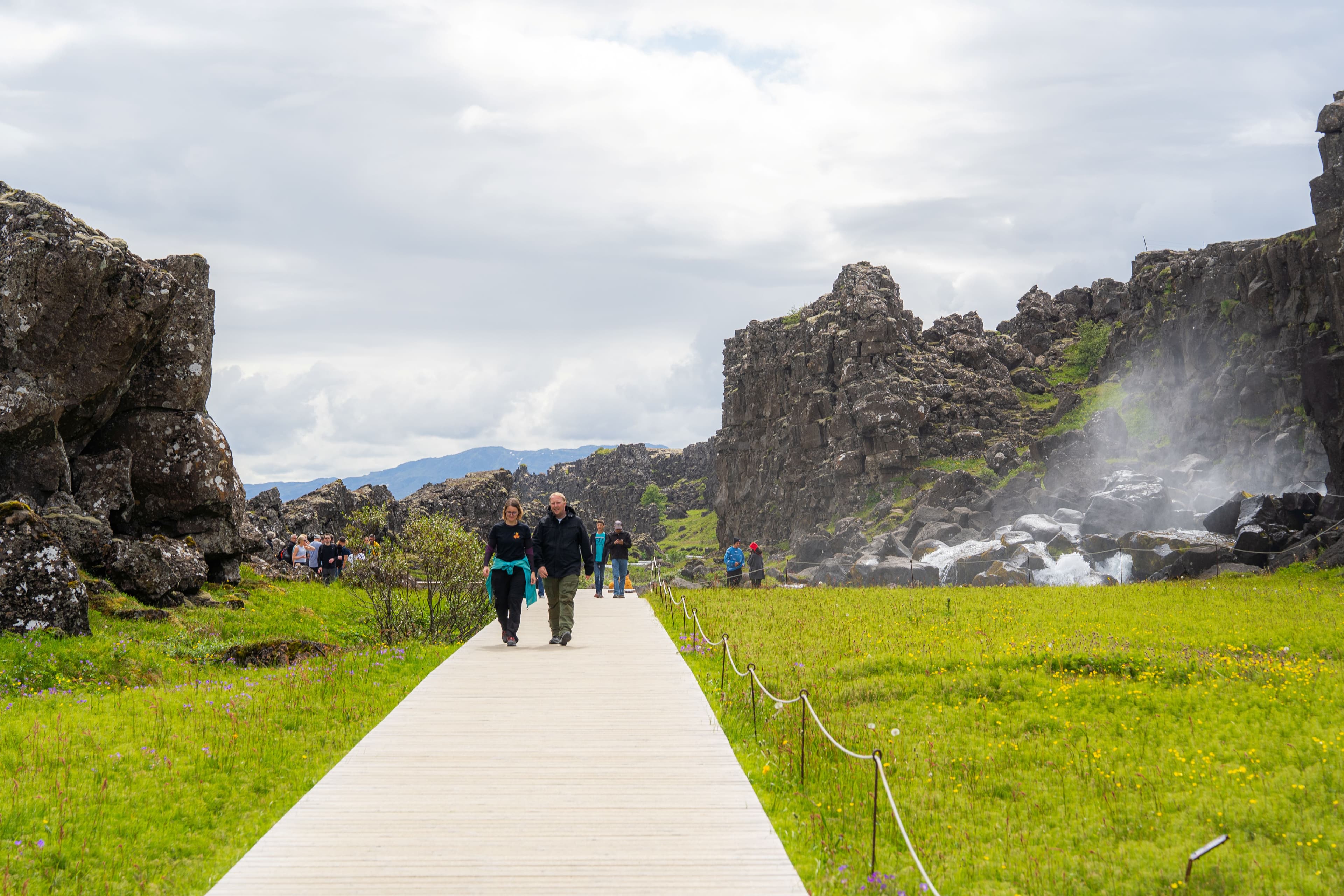 Head to Thingvellir National Park, where you’ll walk between the Eurasian and North American tectonic plates. Learn about the park’s history and take in the stunning landscapes.