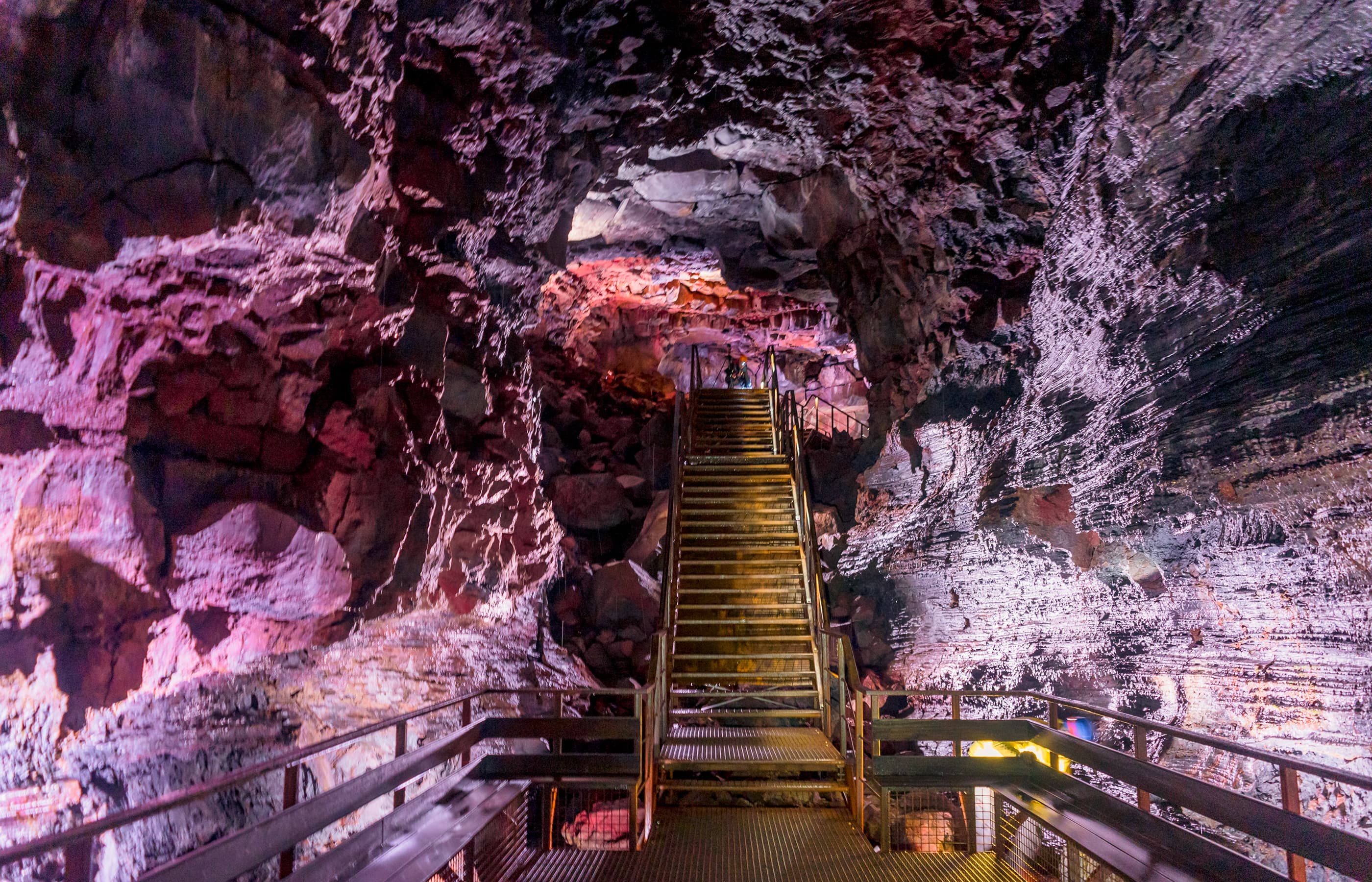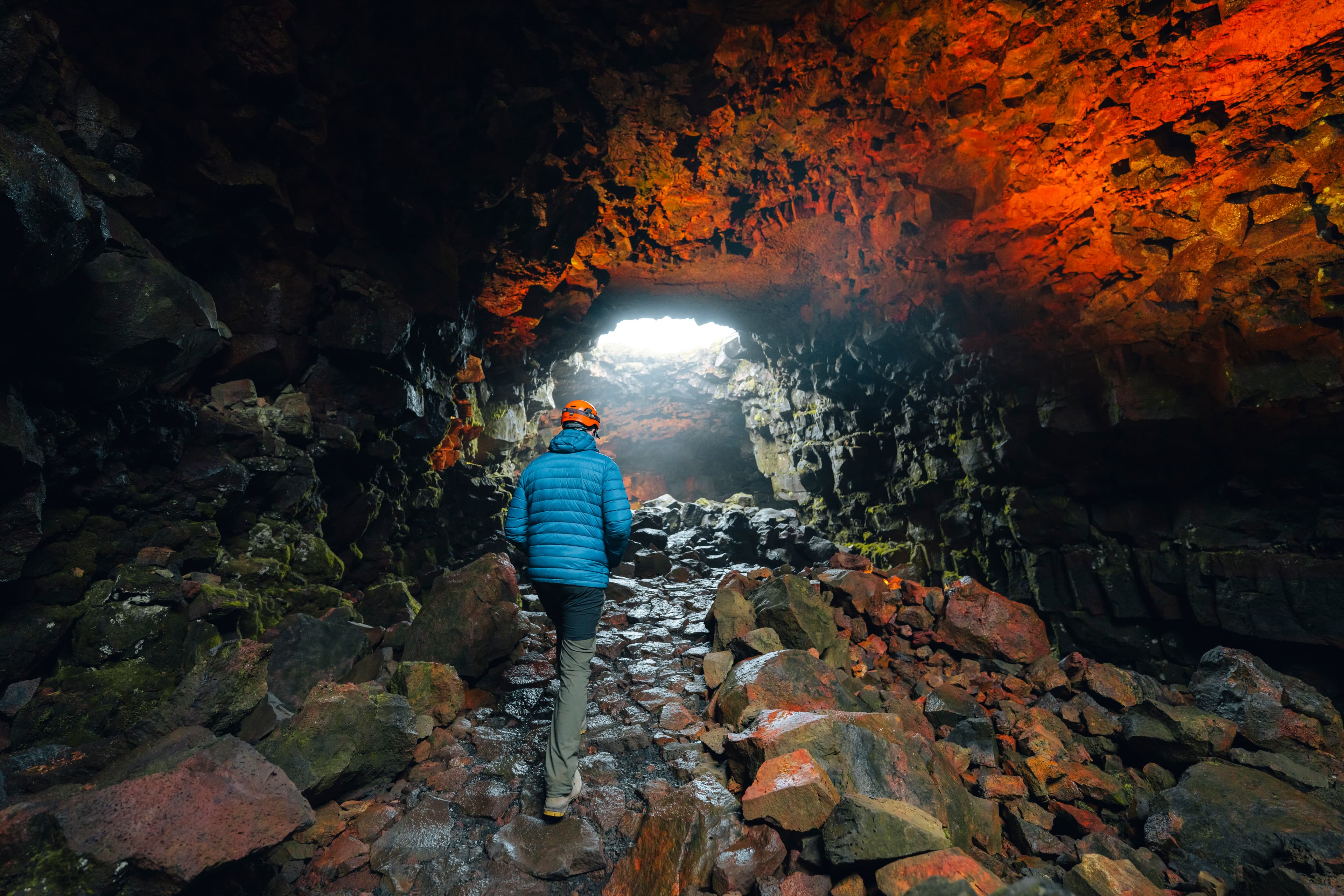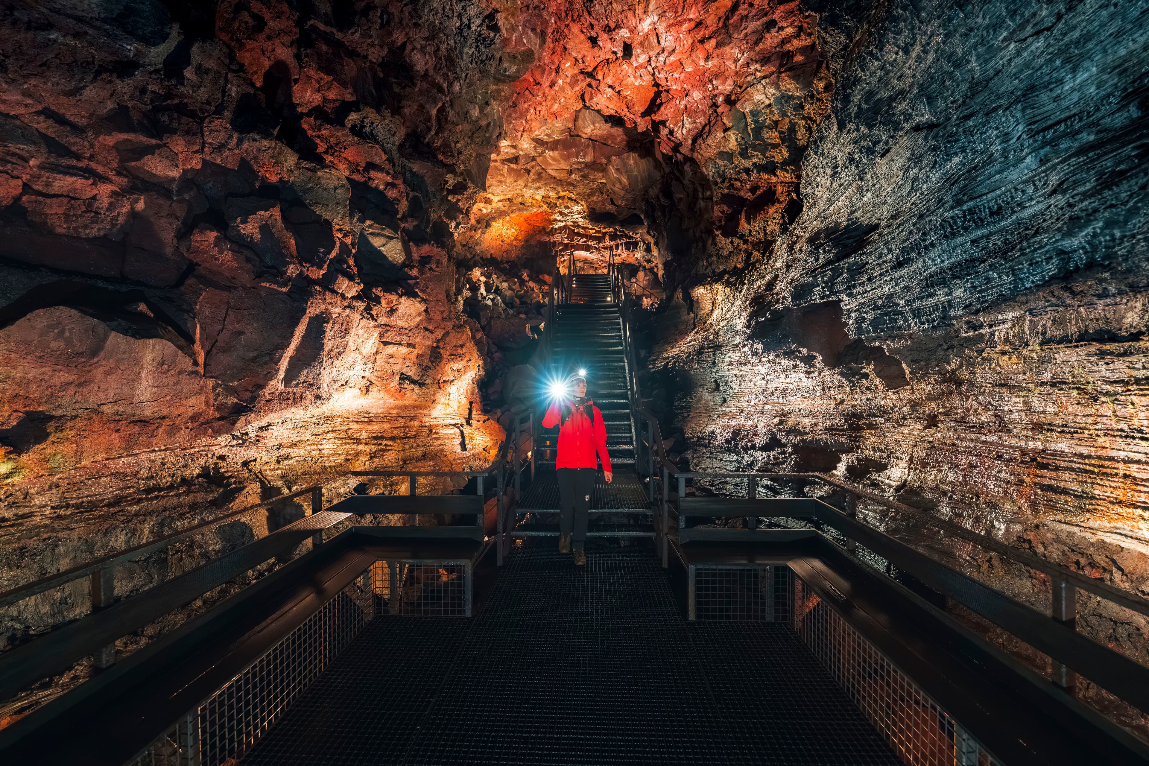 Raufarhólshellir, one of Iceland’s longest lava tubes, stretches 1,360 m and offers a spacious, easy walk through stunning volcanic formations. Enter through a narrow opening and journey deeper into the cave, where naturally colored walls shimmer in red, violet, and turquoise from mineral deposits. Along the way, our expert guides share the cave’s history, highlight its most impressive features, and ensure a safe, unforgettable adventure. The tour lasts for approximately 1 hour. You'll then be dropped back in Reykjavík after the tour for some free time before being picked up again for the section half of the tour.