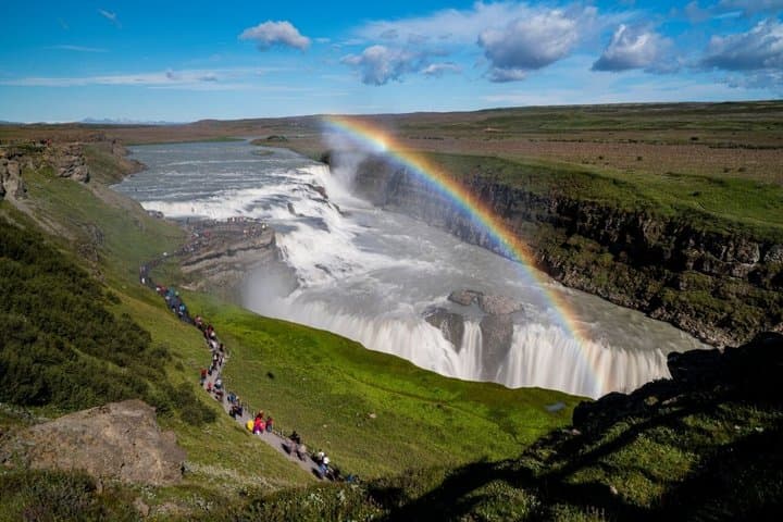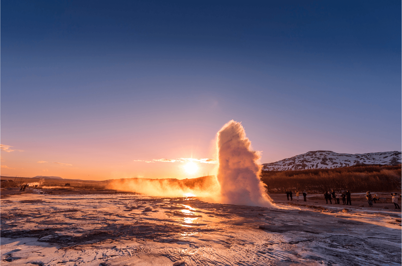 Your day starts with a visit to Þingvellir National Park, where you can walk between two continents and learn about Iceland’s history and nature. You will then continue to the Geysir geothermal area, where Strokkur geyser erupts every few minutes. Next, visit the powerful Gullfoss waterfall, one of the most popular waterfalls in Iceland.