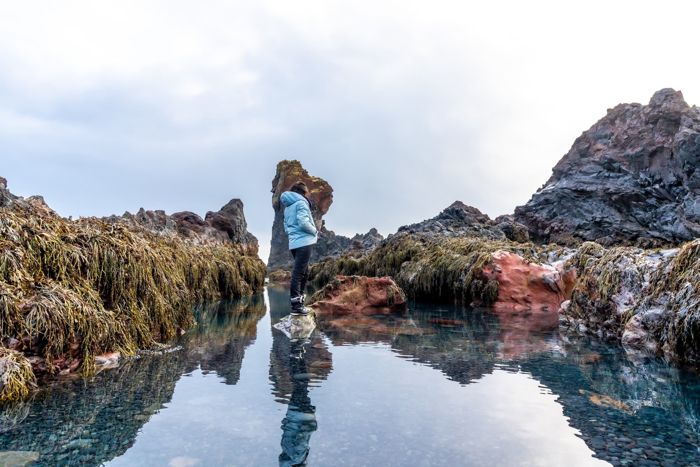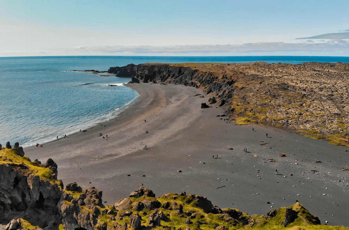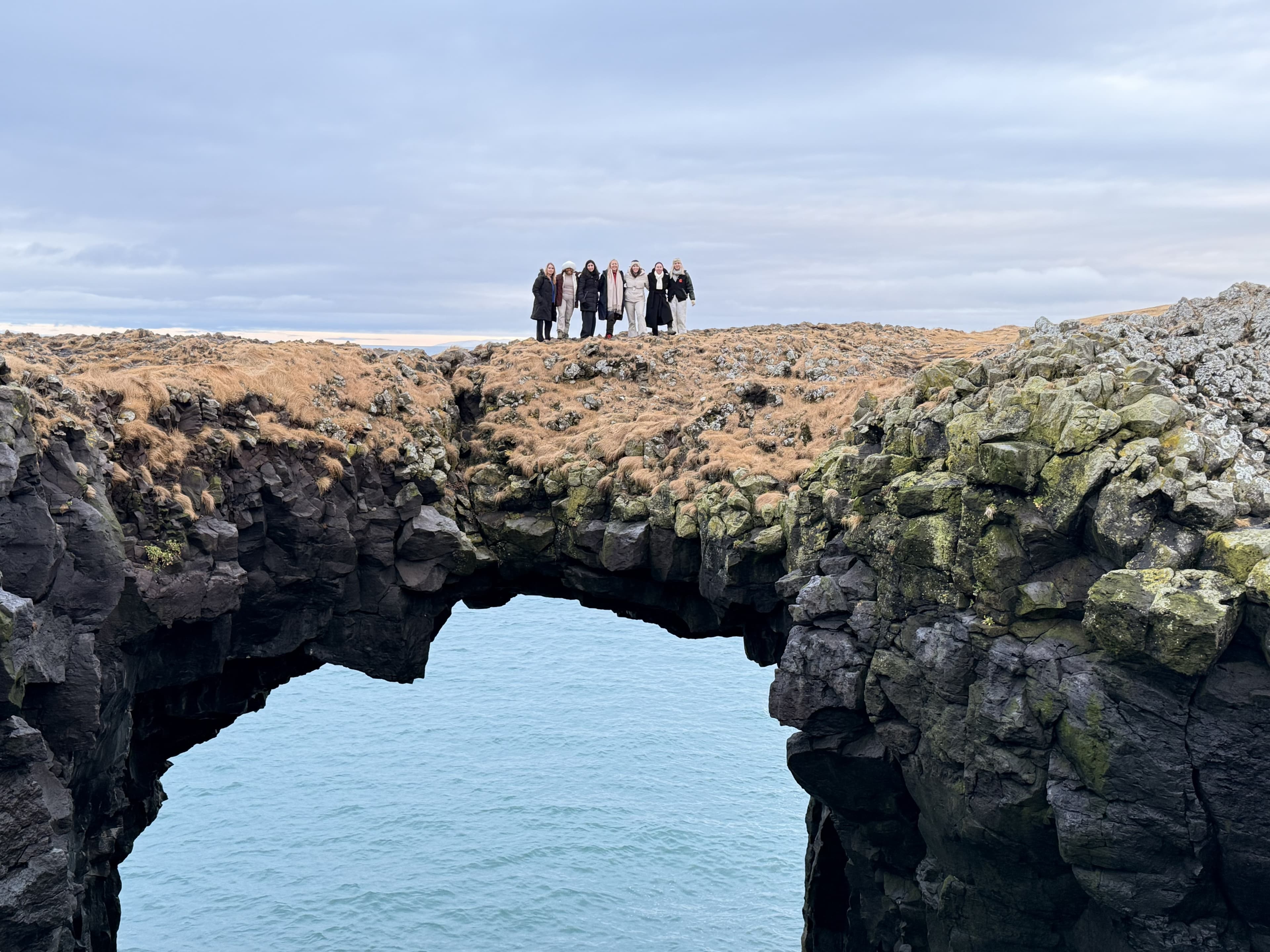 The day begins at Ytri Tunga Beach, where wild harbour seals haul out onto the rocks year-round in one of Iceland's most reliable and genuinely moving wildlife encounters. The southern shore of the peninsula then leads to Rauðfeldsgjá Gorge - a narrow crack in the cliff face that opens into a hidden, mossy canyon with a stream running through it - and the stunning sea arch of Gatklettur at Arnarstapi, where the ocean has carved a perfect hole through solid rock, framing the open Atlantic beyond.