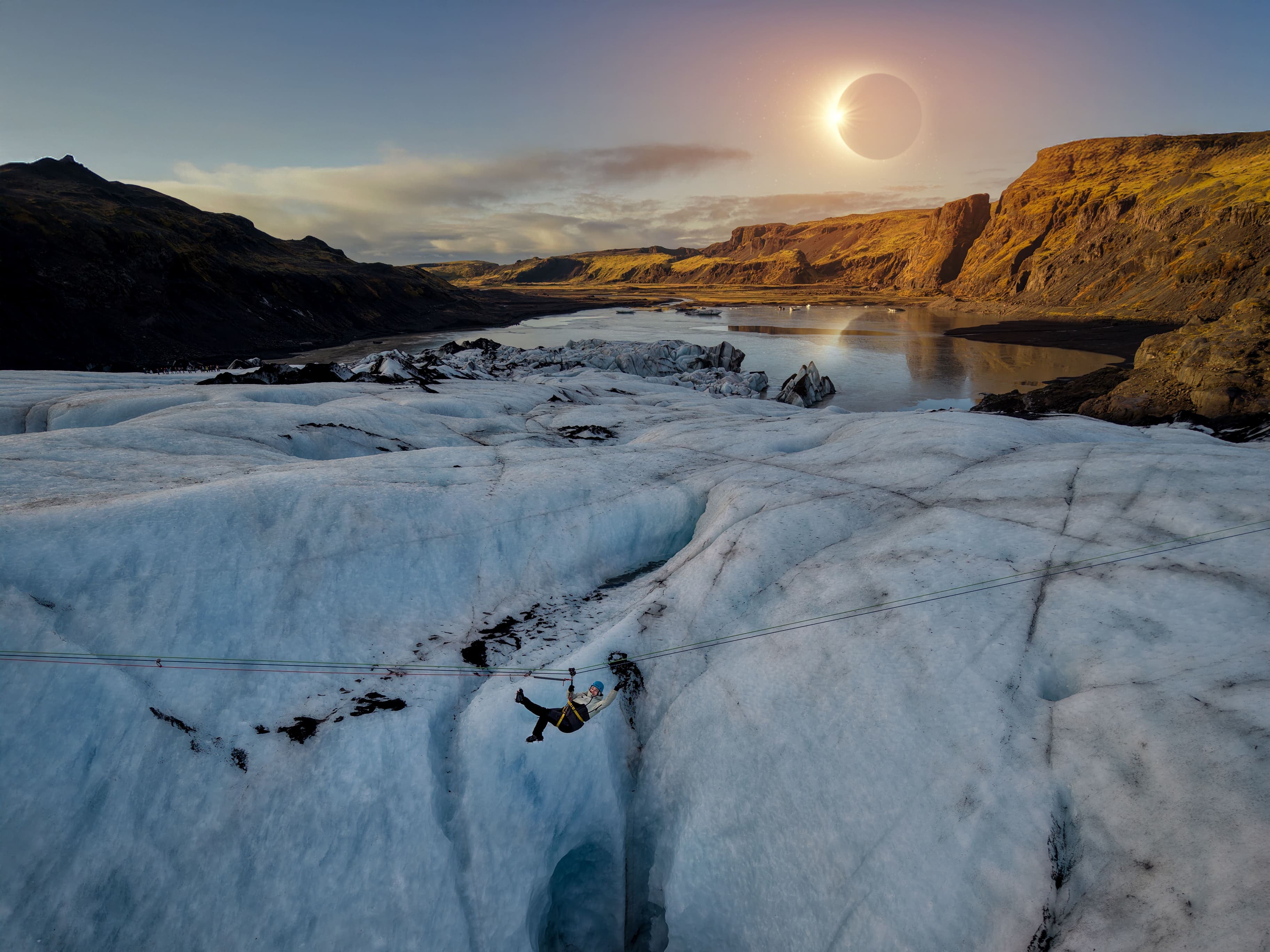 - Zipline Thrill: Glide across an icy moulin, with panoramic views of the glacier and the surreal twilight-like eclipse atmosphere.