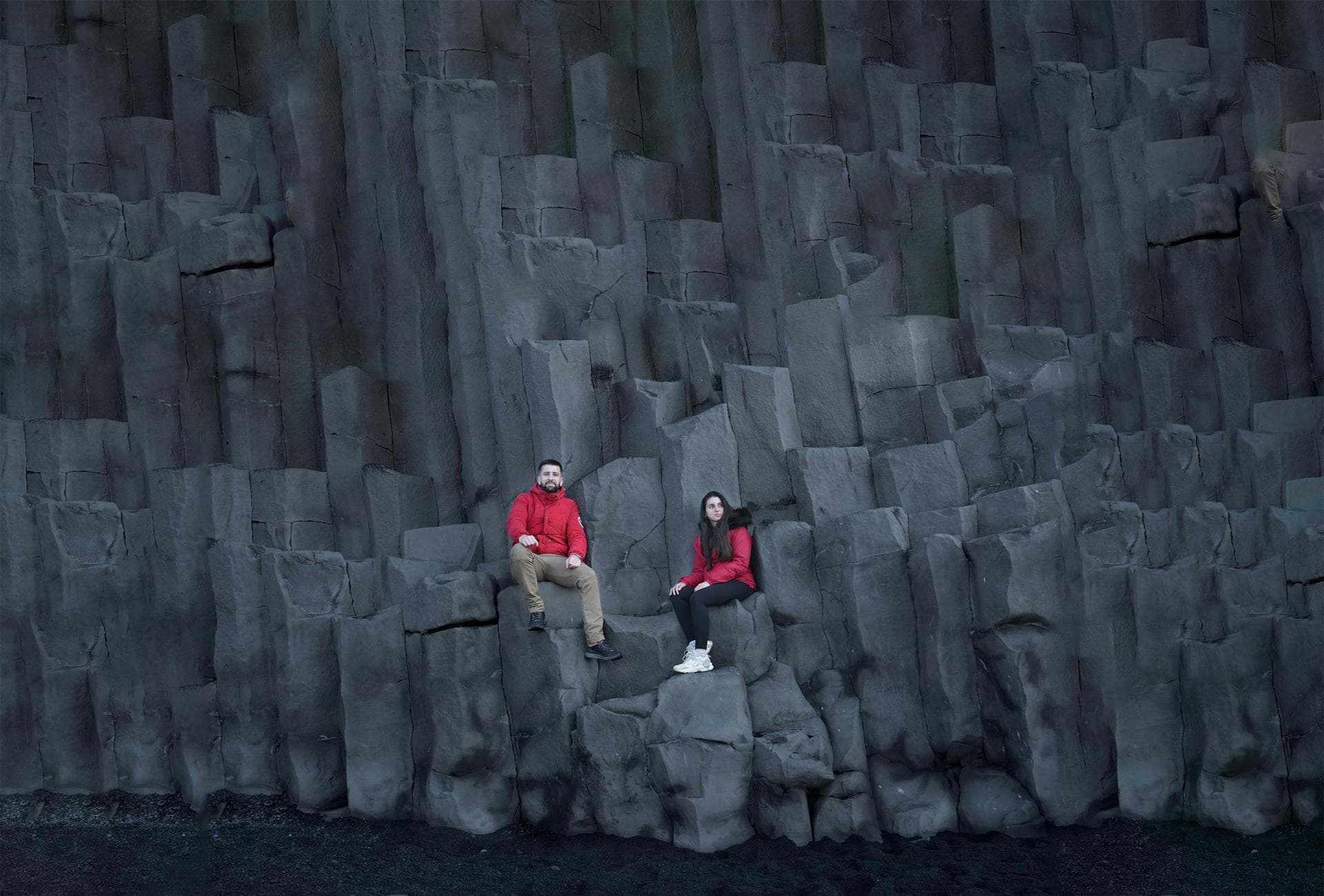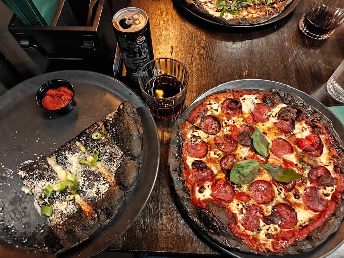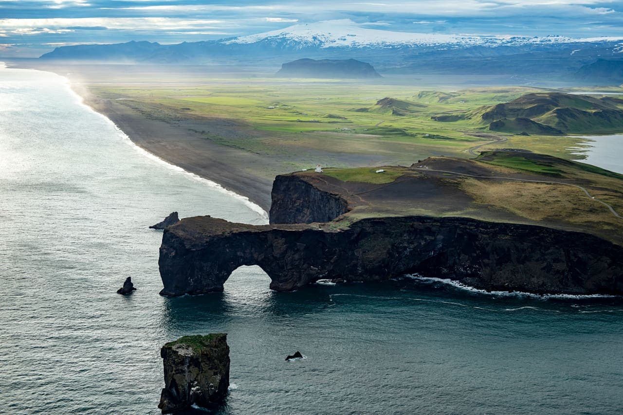 From there, the tour moves through some of the most dramatic scenery on the South Coast. Dyrhólaey offers panoramic views from a headland high above the Atlantic. Reynisfjara Black Sand Beach lines the shore with towering dark rock columns and the offshore Reynisdrangar sea stacks. Then comes Vík and the black pizza - a pizza baked with activated charcoal in its crust, available only here, and included as part of your tour. It is one of the most talked-about culinary stops in Iceland.