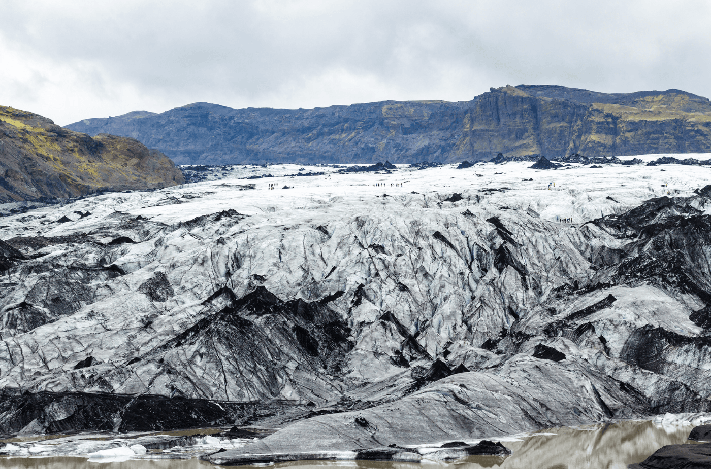 The day begins with a drive east to the glacier. The walk to the edge of Sólheimajökull is accessible to guests of all fitness levels - there is no ice climbing, no crampons required, and no experience necessary. You simply walk to the glacier's tongue and stand at the boundary of ancient ice and open landscape. It is unhurried, striking, and one of those stops that stays with you long after the day is over.