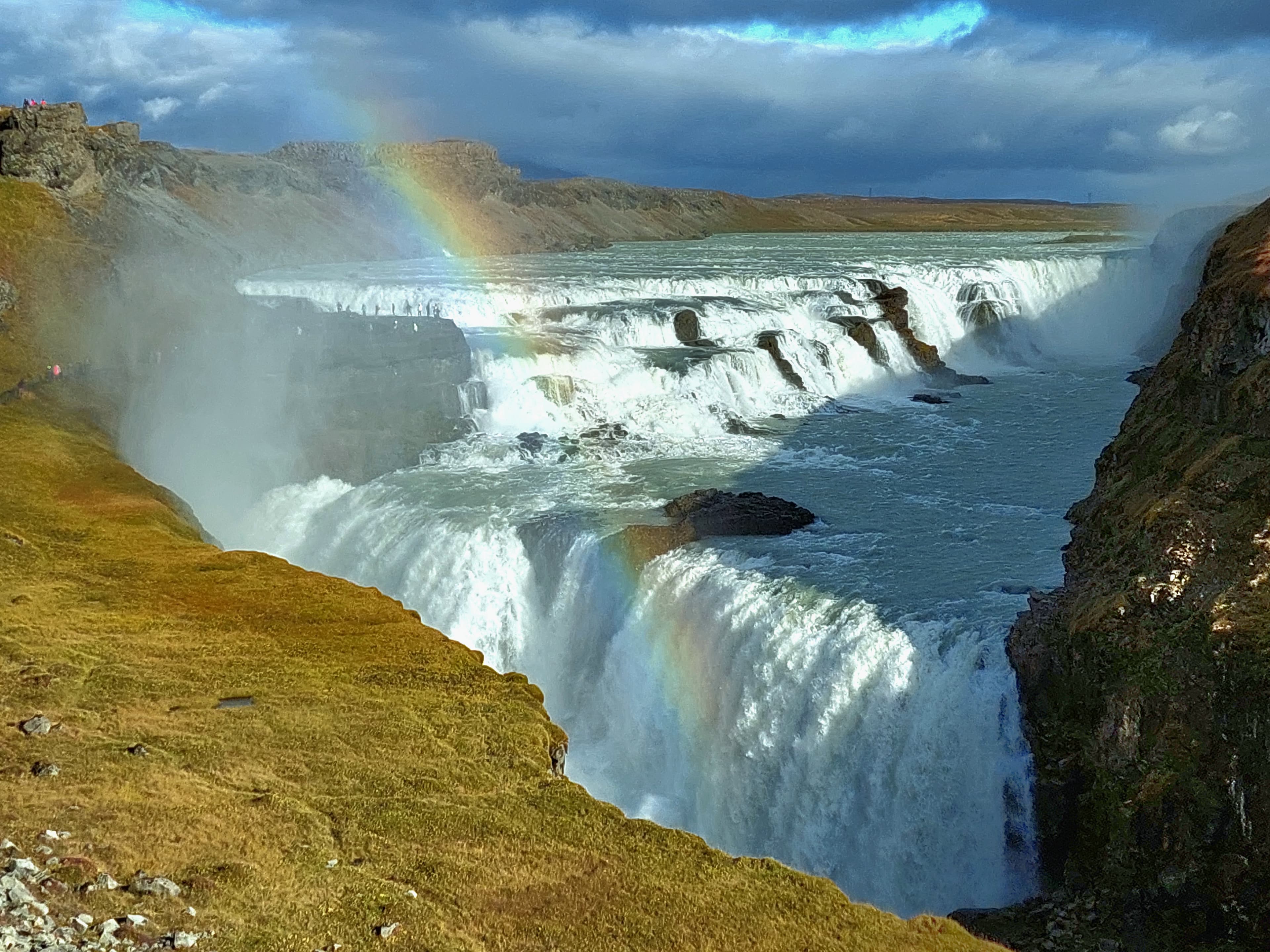 Our journey through the Golden Circle leads us to Gullfoss, Iceland's breathtaking Golden Waterfall. Here, the meltwater from the massive Langjökull glacier crashes into the Hvítá river gorge, creating a dramatic and unforgettable display of power and beauty. As the water plummets in two distinct stages, it creates a stunning spectacle of swirling currents and misty spray. With its unique curves and golden hues, Gullfoss captivates visitors, leaving them in awe of nature's grandeur. Langjökull, Iceland's "Long Glacier," is like nature's icy playground, stretching over 953 square kilometers in the highlands. Imagine a frozen wonderland where the ice cap reaches up to 1,450 meters high, hiding bubbling geothermal hotspots and sleeping volcanic giants beneath. Langjökull isn't just a glacier; it's a water factory, feeding rivers like the famous Hvítá, home to the stunning Gullfoss waterfall. Adventure seekers flock to Langjökull for its thrilling snowmobiling trails and magical ice caves that shimmer like crystal palaces. It's a place where you can feel the pulse of the earth beneath your feet and marvel at the ever-changing dance between fire and ice in Iceland's wild heart.