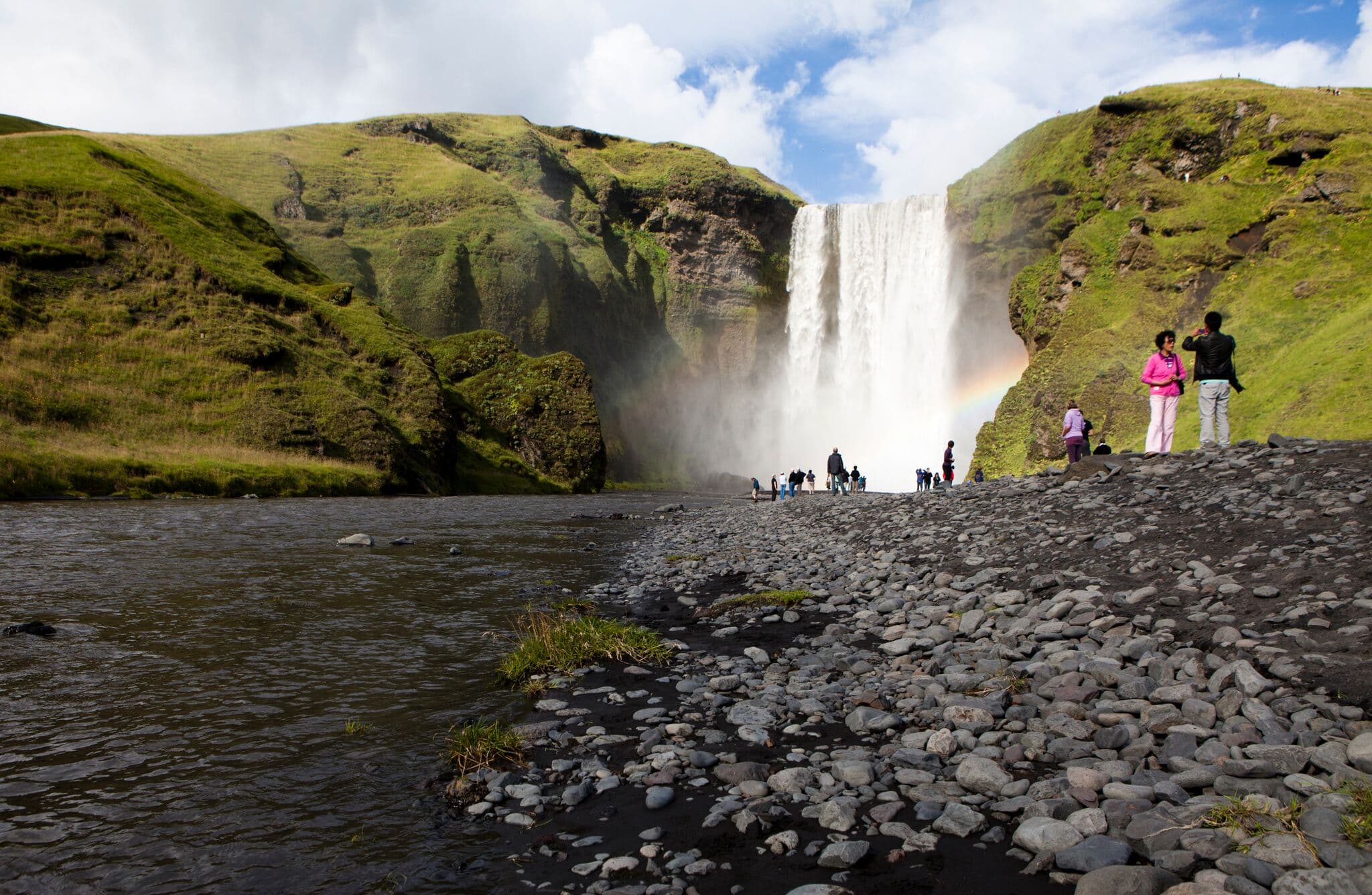 Afterwards we continue with the tour. We will visit Vík for lunch, and then continue with our journey through the South. We will stop at the famous Skógafoss waterfall as well as Seljalandsfoss (don´t miss the perfect photo opportunity of walking behind it!).