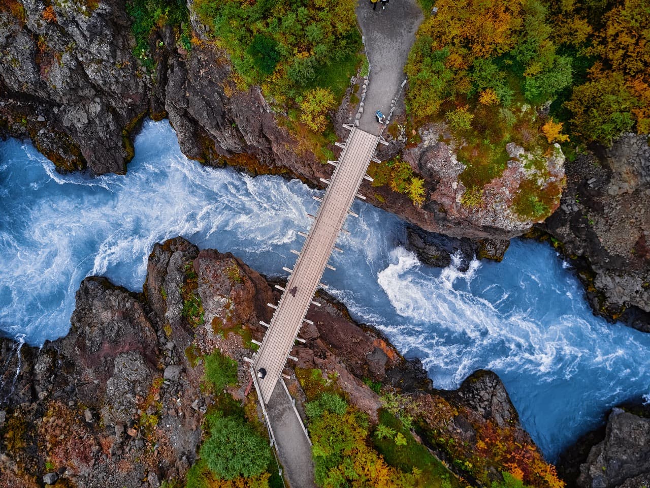 Before heading back, we visit one of Iceland’s most striking natural wonders: Hraunfossar and Barnafoss. Here, clear spring water flows straight out of the lava field, forming hundreds of tiny waterfalls. The nearby Barnafoss (“Children’s Falls”) has a haunting legend of its own, ask your guide to tell you the story if you’re in the mood for a little drama.
