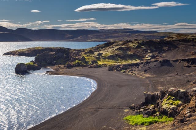 Your journey begins at Hópsnes, a black sand beach, complete with an eerie shipwreck. From there, we’ll ascend the dramatic slopes of Festarfjall mountain, offering sweeping vistas of Fagradalsfjall and nearby eruption sites. The adventure continues over black sand beaches, jagged lava fields, and along the wild coastline, concluding in Grindavík where the raw force of recent volcanic activity comes vividly into view.