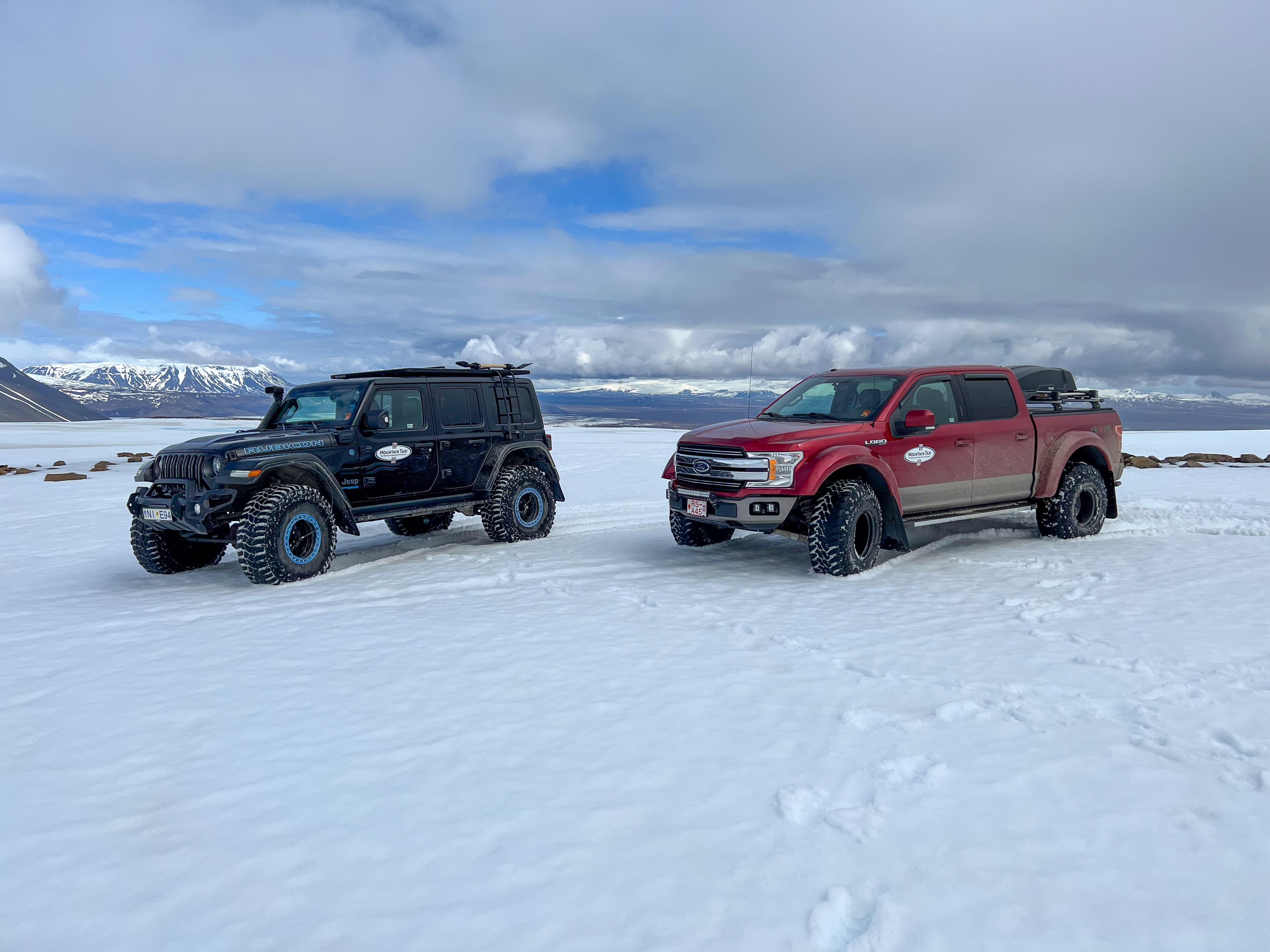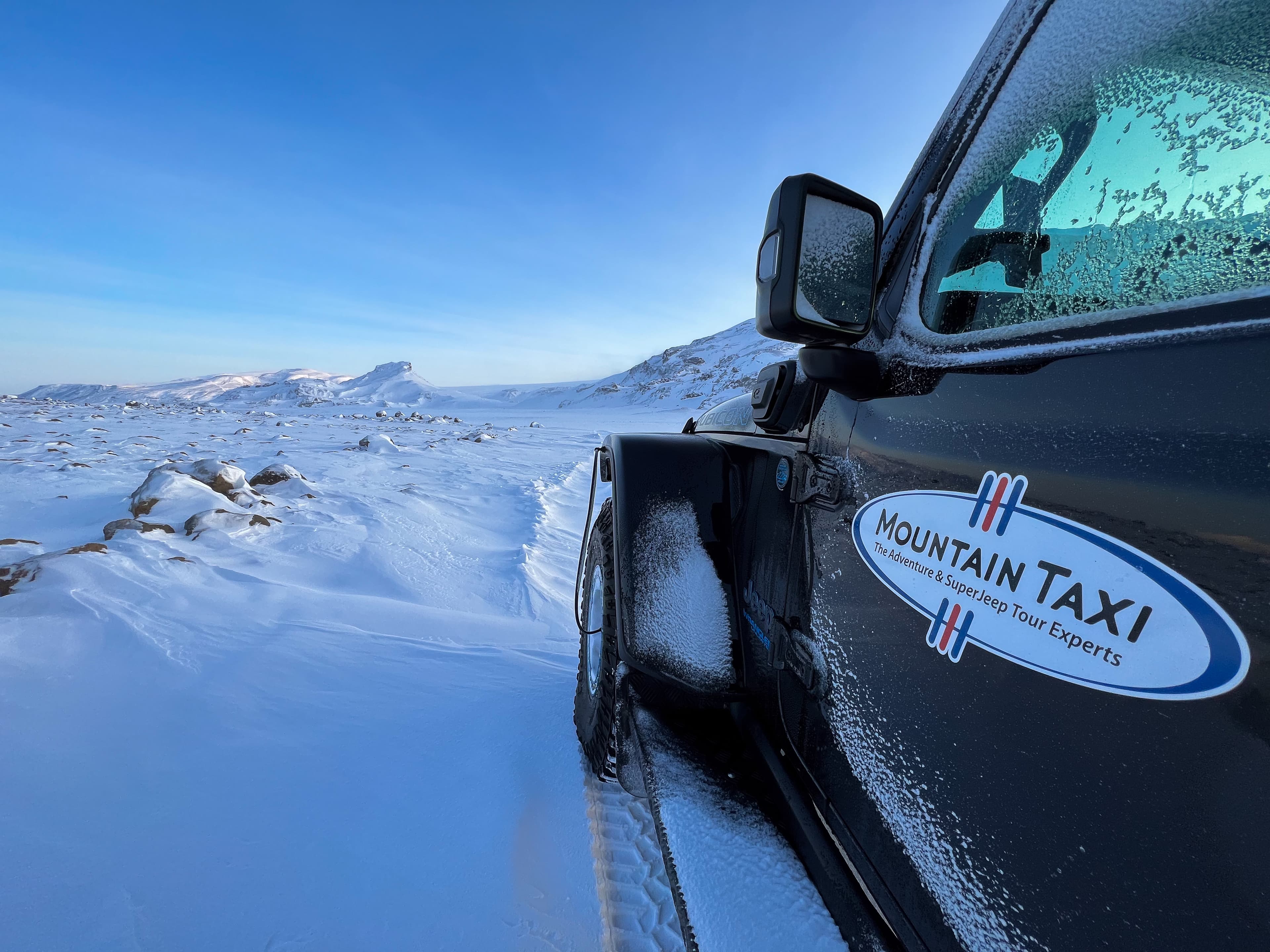 “The Nutshell” is Mountain Taxi’s signature day trip special and a perennial favourite of our guests. A morning drive from Reykjavik in our Mountain Taxi Super jeep brings us to Kaldidalur or "Cold Valley". On our right lies the western side of the massive, nearly 1.000 square kilometer large Langjökull glacier, resting on a torn and twisted volcanic base. Depending on time of year, weather and conditions, your expert driver may use his super jeep's extreme abilities to climb the glacial slopes of Langjökull. An opportunity for cold, personal contact with nature's icy element. We drive from the glacier, through Húsafell to Hraunfossar waterfalls, dropping straight out of lava cliff faces into the glacial river Hvítá. From nature to culture, we visit the historic site of Reykholt, home of Iceland’s legendary chieftain and writer Snorri Sturluson. Here, he wrote some of the greatest Sagas of the Icelanders, brilliant literature also preserving the culture and history of the Viking Age to our day. See Iceland's oldest man-made structure, Snorri Sturlusons 13th century hot tub. Nearby is Deildartunguhver, the most productive hot spring in the Northern Hemisphere and a source of much of western Iceland’s heating needs. Our day wraps up in Reykjavik, taking in the scenic and historic Hvalfjörður fjord on the way.