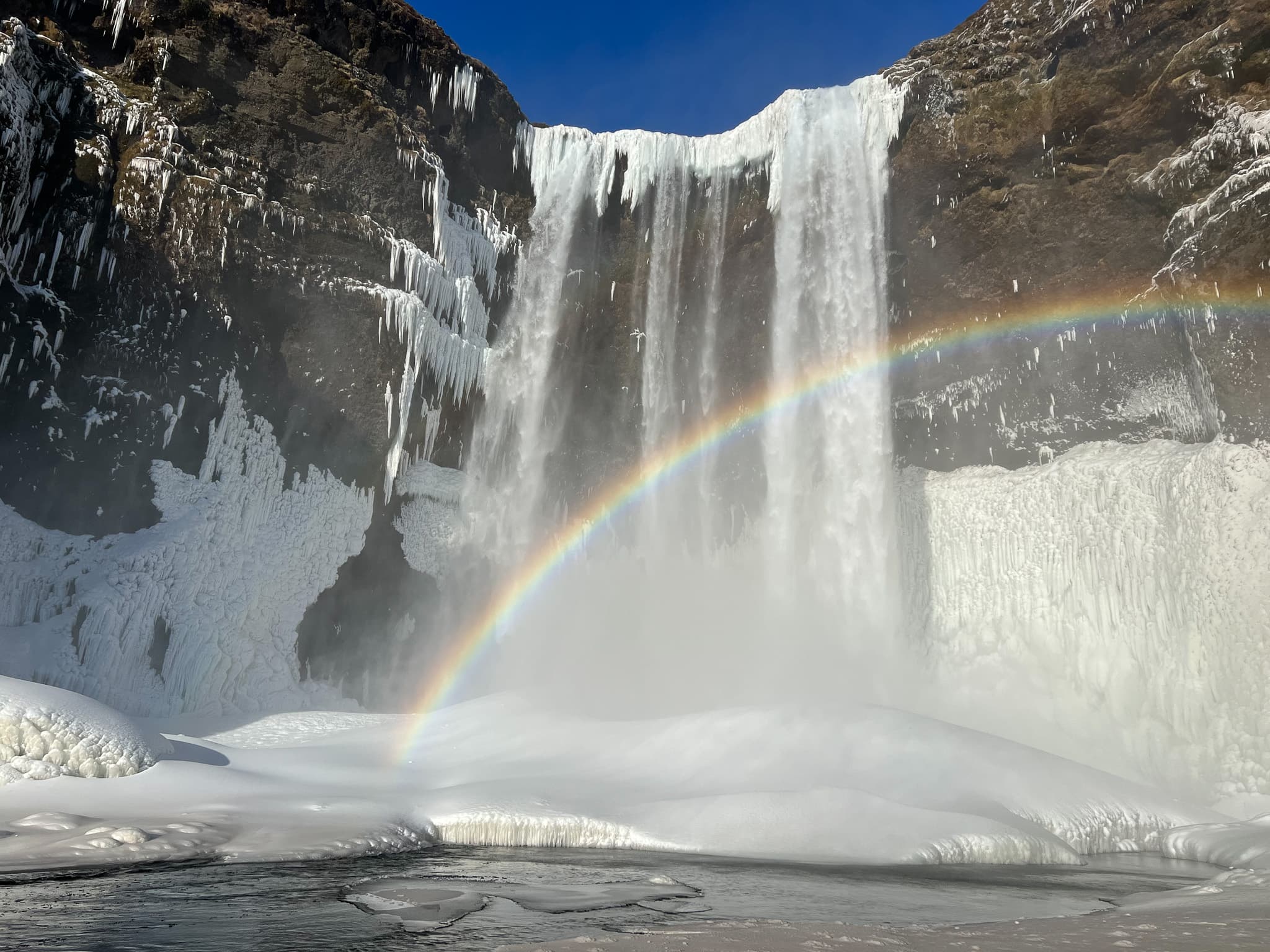 The South Coast of Iceland has many natural wonders to enjoy. We will drive through lava fields, past mountains and glaciers to the southernmost part of Iceland. We will visit Seljalandsfoss waterfall and Skógarfoss waterfall, the Sólheimajökull glacier and the black sand beach on the south coast.