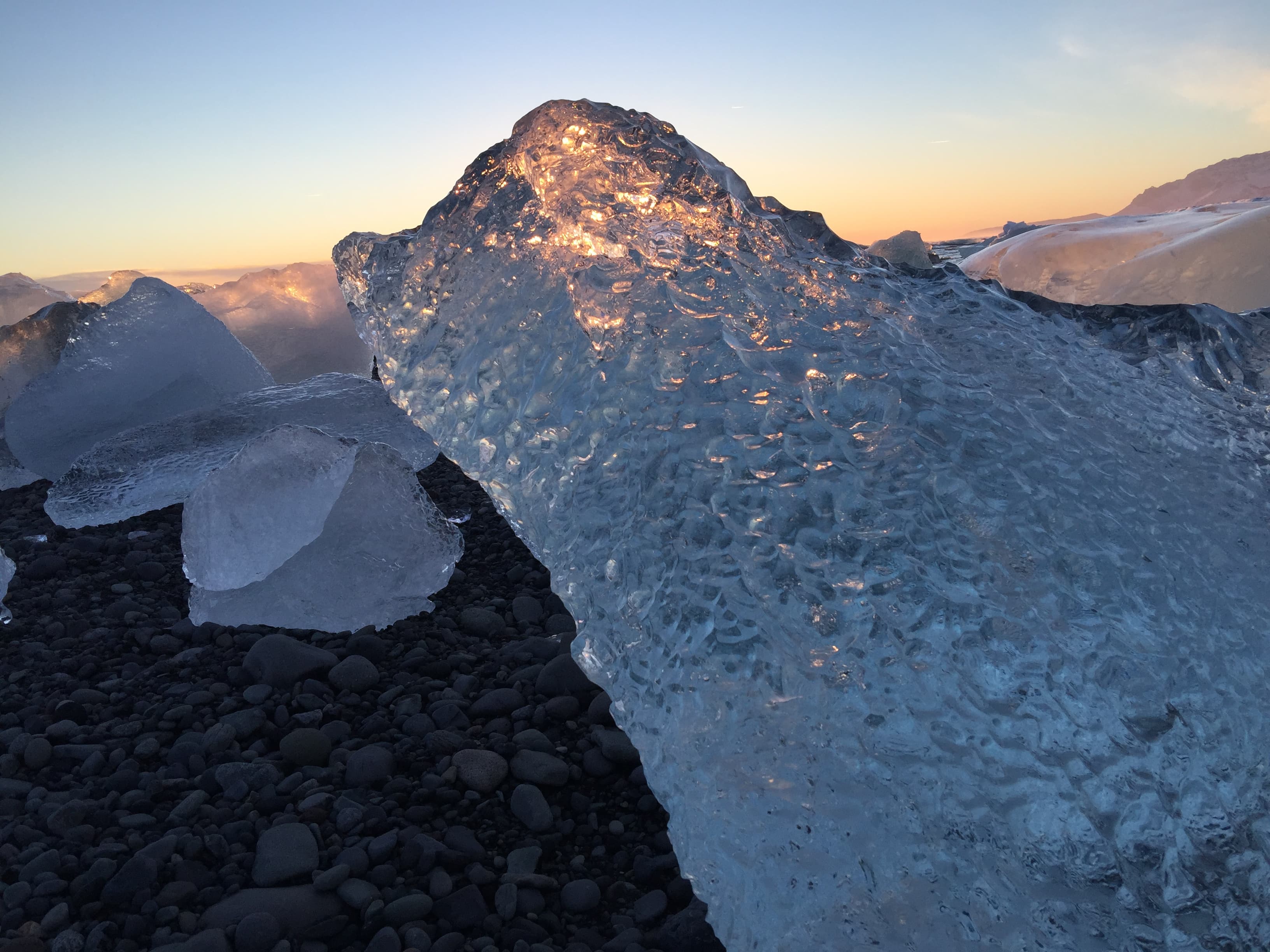 - Day 3: really close from Vík we will find Reynisfjara, the black sand beach, which is also famous for its basalt columns, called Reynisdrangar. We continue our journey towards Jokulsarlon Ice Lagoon and Diamond Beach. Next we head to an Ice Cave where our certified guides will assure a safe and exciting experience. Ice Caves are only found during the wintertime when the glacial rivers retract and the water freezes.
