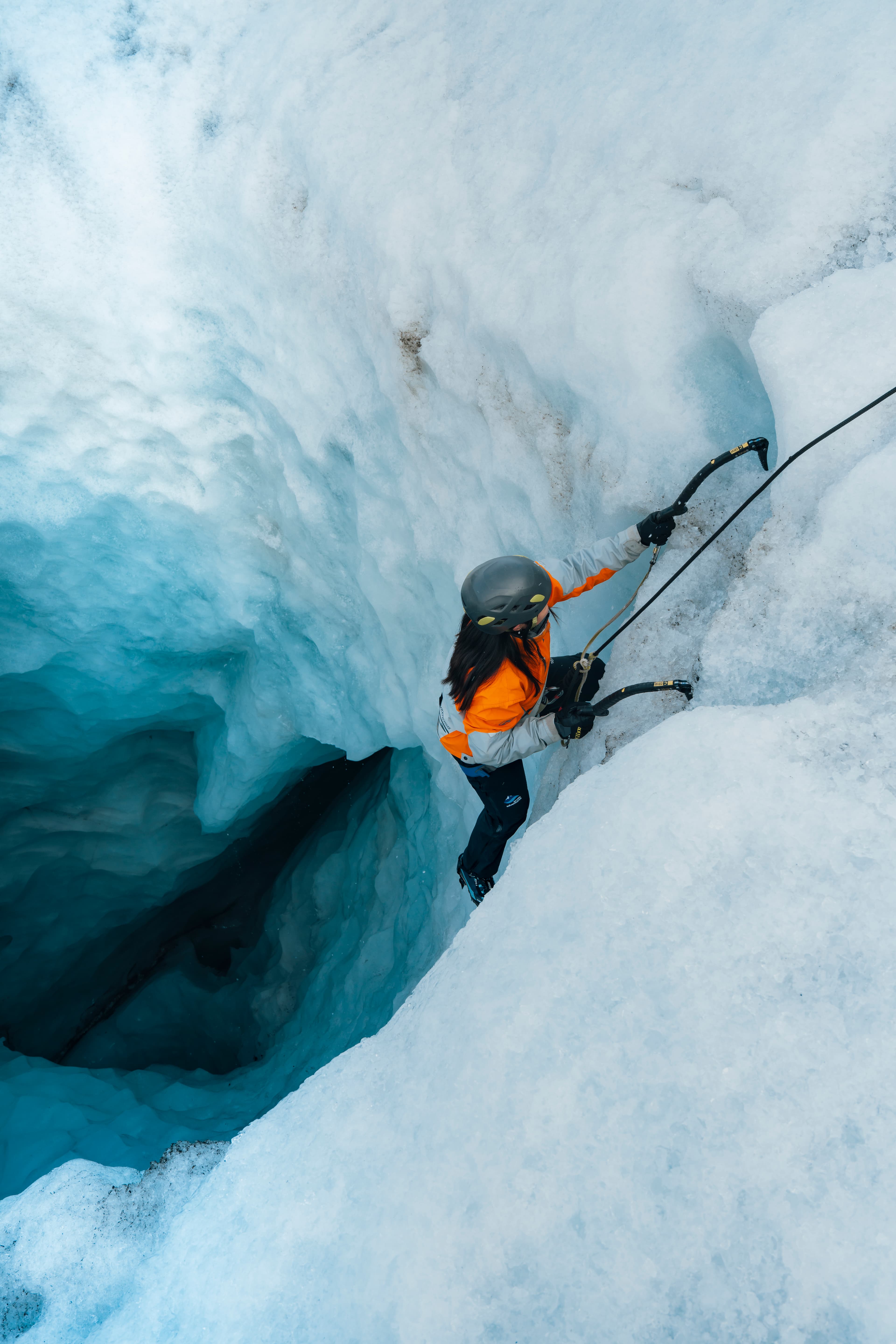 After a brief safety and gear session, we’ll head onto the glacier. You’ll strap on your crampons and begin the hike across a surreal landscape of ridges, crevasses, and shimmering blue ice. As part of the experience, you’ll also get an introduction to ice climbing and have the chance to try it for yourself on an icy wall under your guide’s supervision.