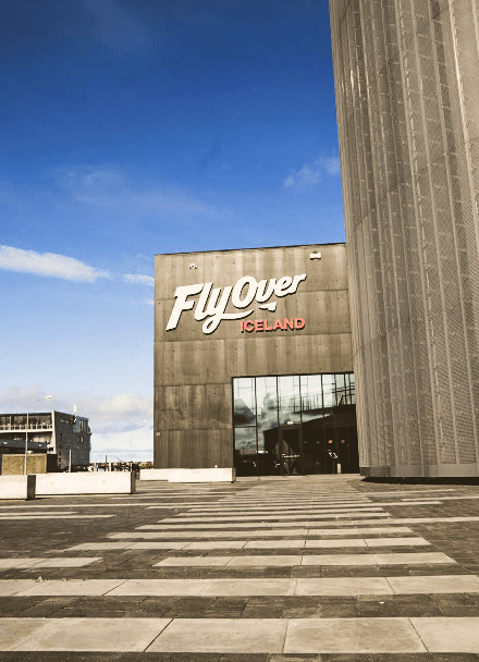 The total duration of the experience is 30-35 minutes. We do recommend that you reserve one hour for your visit to FlyOver Iceland. The FlyOver Iceland building is a landmark at the Grandi district. This beautifully designed house not only holds the FlyOver Iceland flight ride and pre-shows but also a souvenir shop with handpicked local items, photos from the ride and unique souvenirs. The ground floor houses as well a café where you can relax before or after your virtual flight.