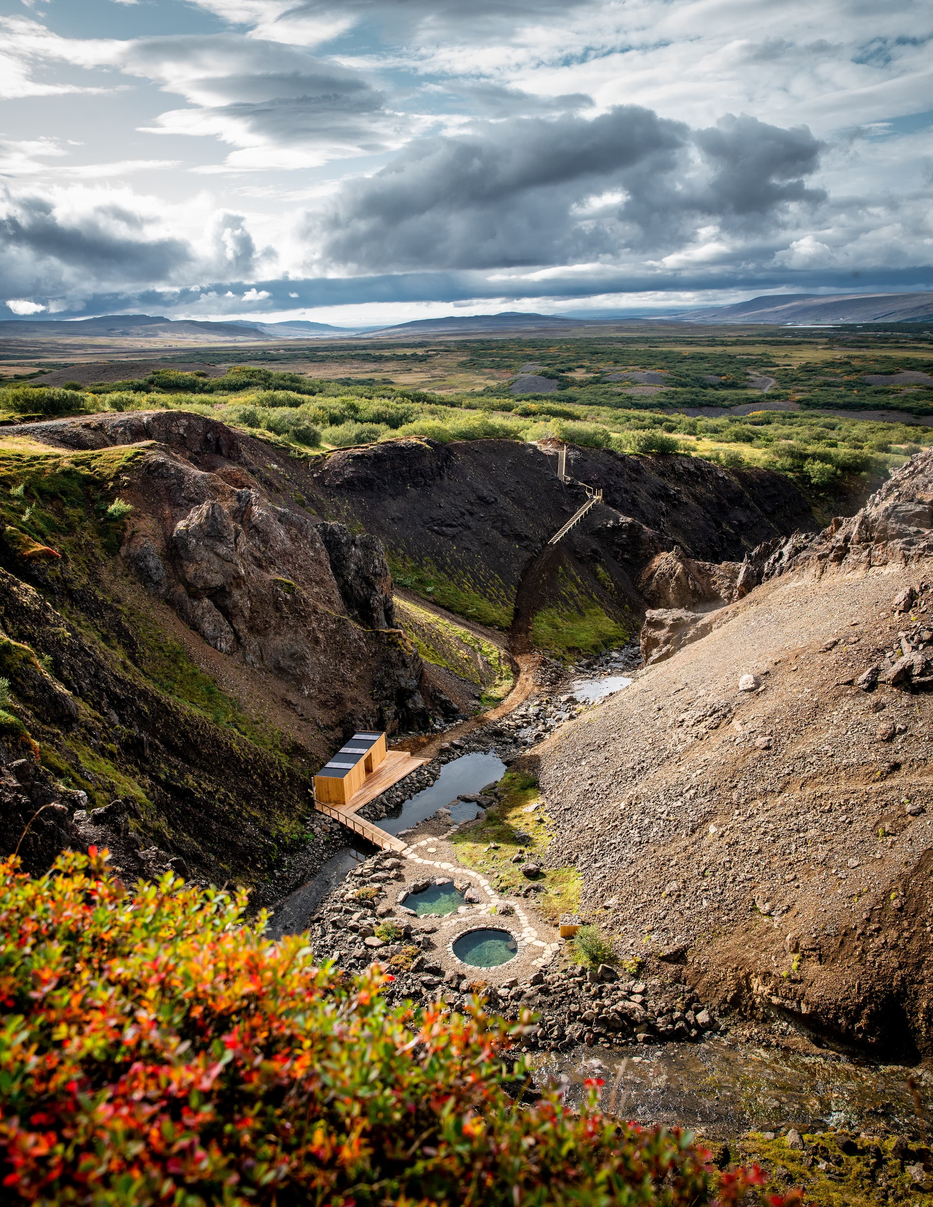 The Húsafell locals who undertook the Canyon Baths project went to great lengths to keep the entire structure as environmentally unobtrusive, sustainable and true to the area’s heritage as possible.