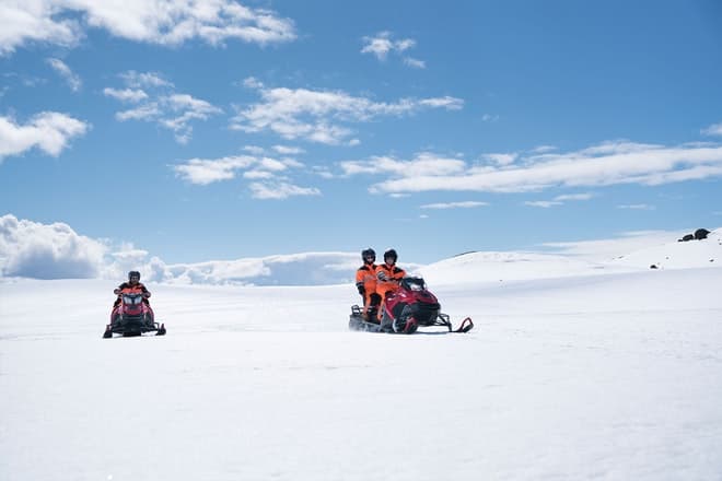 Snowmobile adventure day tour on the Langjökull glacier, includes pick up from your hotel and a transfer to Reykjavík City.