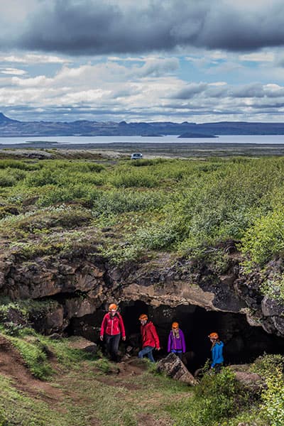 You will then head to the Blue Mountains area where you will get to experience the underworld. Exploring a lava cave and discovering the shapes that the volcano created more then 2000 years ago is a trip that everyone will enjoy. The Leiðarendi cave is a perfect example of an Icelandic lava tube and it will allow you to climb, crawl and walk whilw learning about the geology of Iceland from your specially trained cave guide. Disclaimer: All adventure trips are undertaken on the responsibility of its participants. Arctic Adventures does not assume any responsibility for accidents that are caused by its customers or can be traced to there own actions. Participants have to sign a waiver before undertaking all trips stating that they realize that all outdoor activities carry an inherent risk.