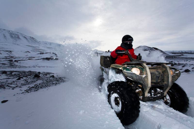 Tour Highlights:- ATV's- Hafrafjall Mountain- Caving- Leiðarendi cave You don´t need to travel far to experience an amazing view of Reykjavík and Esja from a 650 cc CanAm Outlander Max Quad bike. Only after a 15-minute drive you will be on your bike, and then head out on a one hour ATV bike tour to the top of the Hafrafjall mountain. This is an ideal activity to combine adventure and sightseeing with a bit of adrenaline as well. After the ATV trip we will return to city center where you can have a light lunch and to prepare for the second adventure of the day.