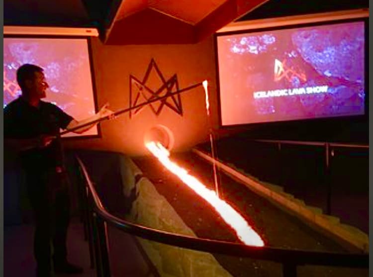 In order to recreate a miniature volcano eruption, they superheat real lava from the 1918 Katla eruption and once molten, pour it into a showroom full of people. It is an incredible, unforgettable experience. In an instant, the showroom heats up to a toasty temperature. And as the audience sits safe in their seats yet only a few feet away from the flowing lava, it is mesmerizing to see, hear, smell and feel the incredible heat that radiates from it. It truly is a sensational experience!