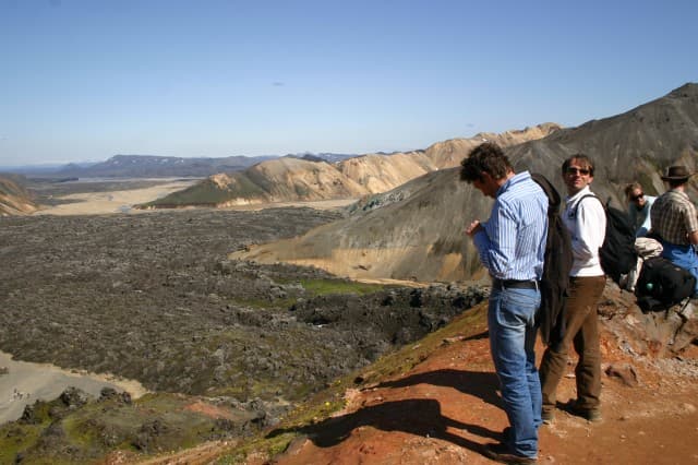 After boarding our Superjeeps in Reykjavik, we cross fertile South Iceland farmlands, opening up to grand views of Hekla volcano's snow-covered top (elev. 1491m). Hekla's next eruption is long overdue and expected at any time so you just might catch the show. Since Iceland's human settlement in the ninth century, Hekla's 20-30 eruptions have ranged from pretty little tourist attractions to explosive disasters. There's no wonder Hekla has long been taken for the entrance to Hell for damned souls. Conditions permitting, we may make it up onto the volcano’s eruptive ridge, ca 900m above sea level, where the air is crisp and the views incomparable. Pushing deeper into Iceland's eruptive interior, we take in and touch scenery so unreal it is repeatedly used for other- world Hollywood A-films. When we arrive in Landmannalaugar we can hike, or dip in Iceland's most famous natural hot pool, or both. When you havet been suitably geothermally cooked, it’s time to head north through “does-this-really- exist” looking surroundings with stop at Gjáin (Games of thrones site) before driving towards Reykjavík.