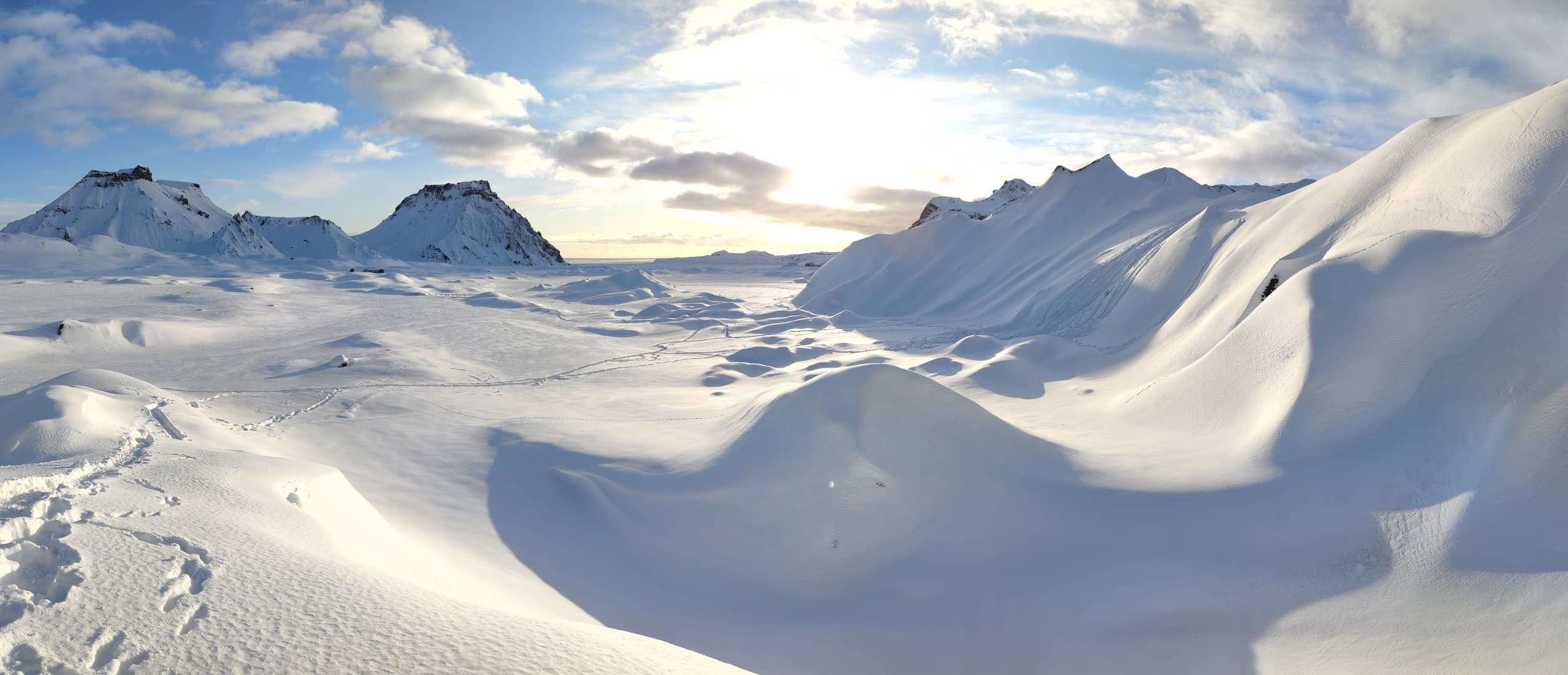 This is a super jeep adventure with the unforgettable experience of walking through caves made from ice on he Katla glacier. To get to the glacier we use modified jeeps with huge tyres. This is part of the adventure. When we arrive at the base of the glacier in the middle of the Icelandic wilderness, we will explore ice cave, and hike around a little on the glacier. After that we drive to Hjorleifshofdi, a deserted black sand beach.