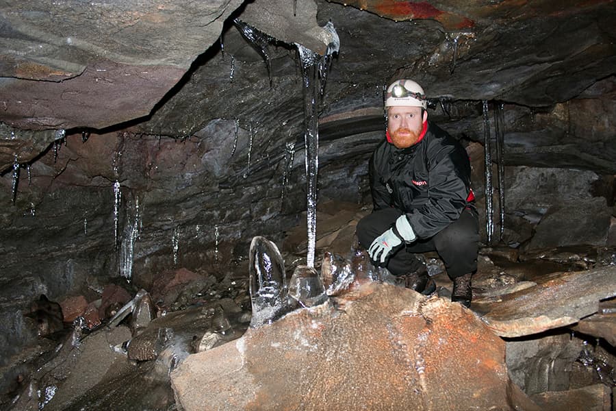 Leiðarendi is about 900 meter long and in there is about 150 meter walk towards it. The cave lies in fact in a circle. The cave is pitch black without light but you will get a helmet and headlight so you will easily see the wonders that the cave has to offer. You will see magnificent lava formations such as stalactites and drip stalagmites and have an underground adventure. You might need to hunch and crawl a bit but all in all the cave gives an easy access to the underworld of the Icelandic lava fields. The lava above the cave was formated more than 2000 years ago.
