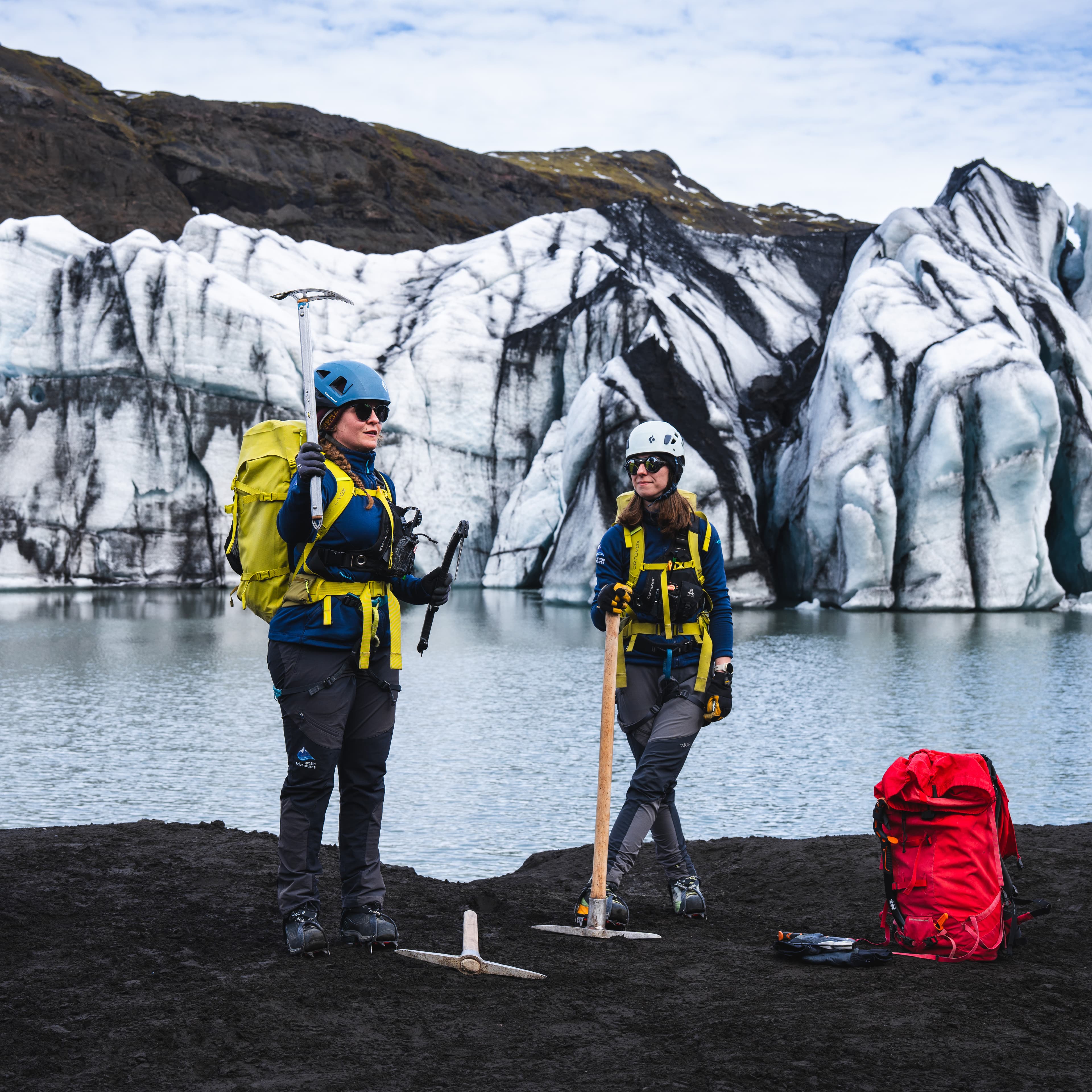 Then, gear up for the highlight of the day: a guided glacier hike on Sólheimajökull, an outlet glacier of Mýrdalsjökull. Your certified guide will provide all the necessary gear and lead you across the ancient ice, past deep crevasses and surreal blue ice formations.