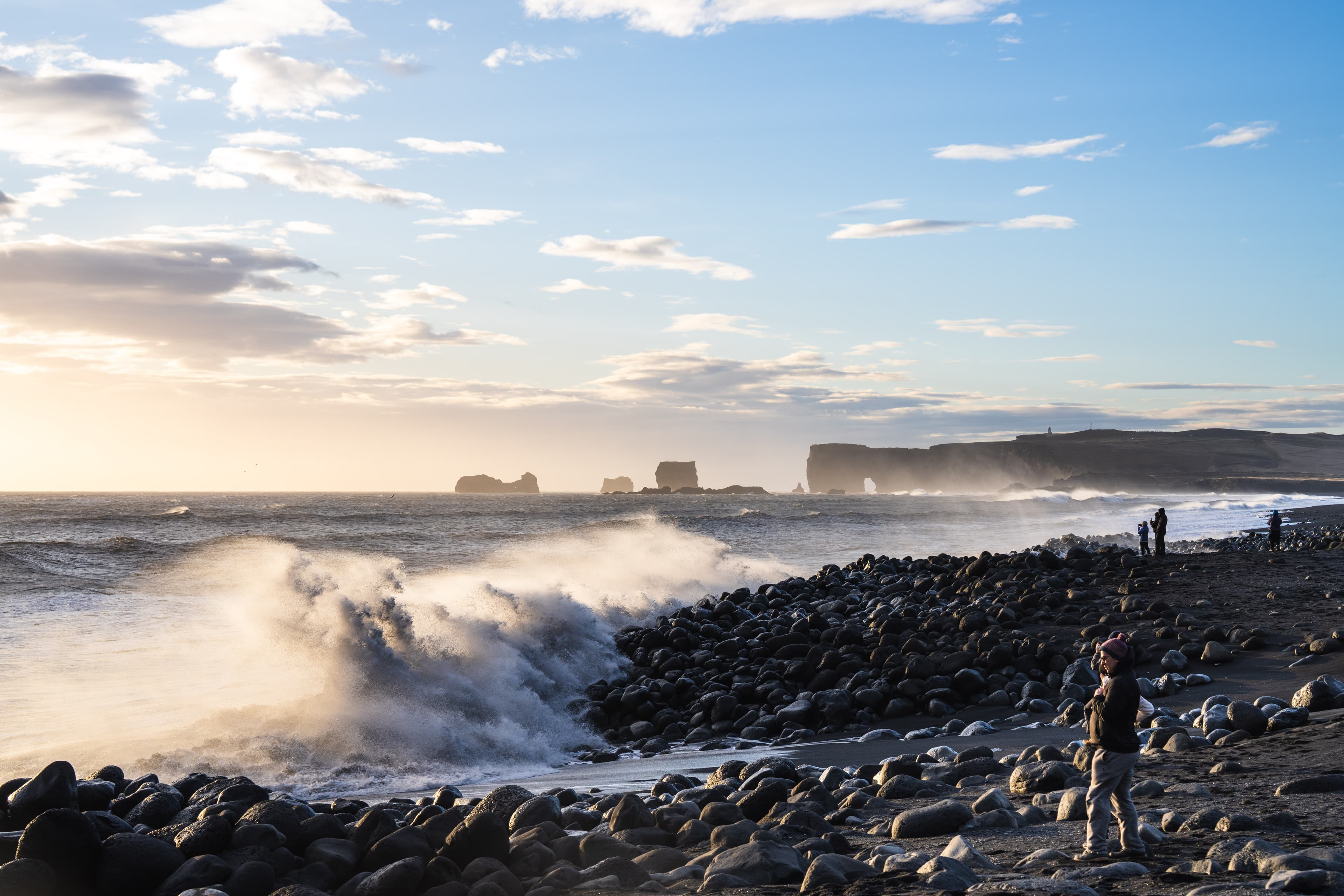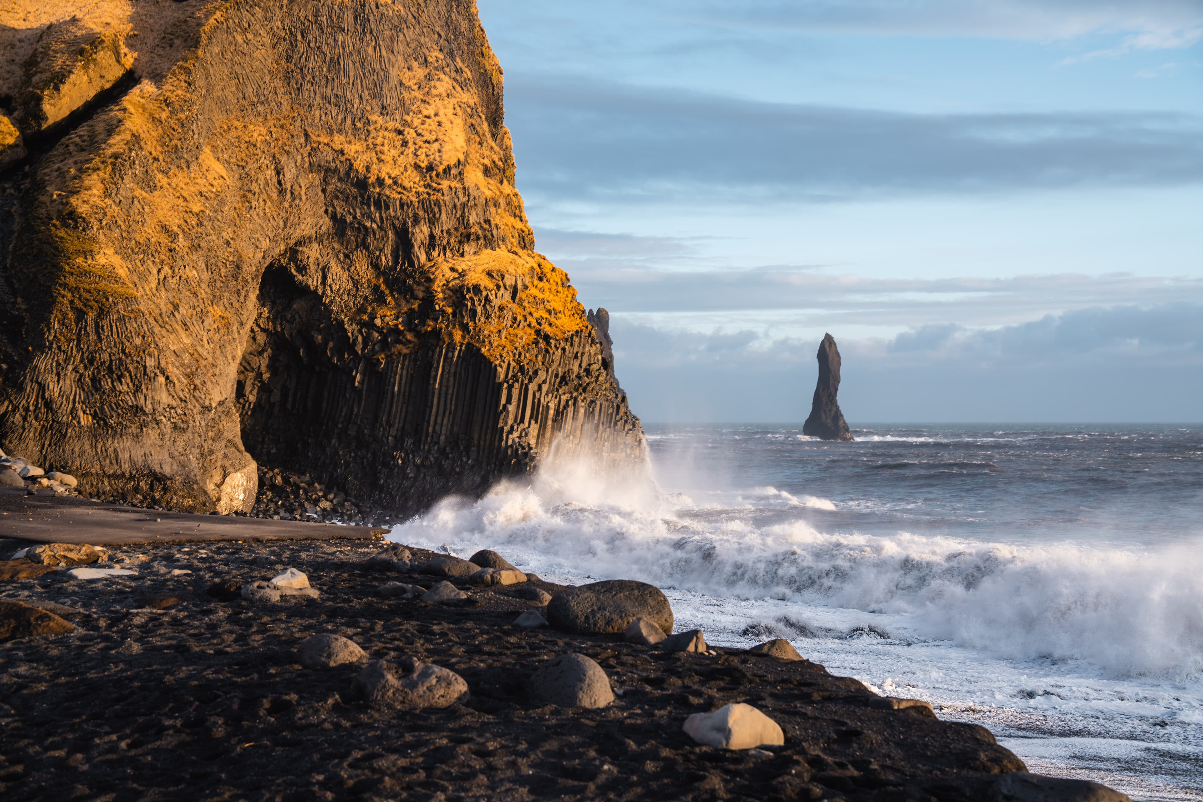 Next, we explore the dramatic Reynisfjara Black Sand Beach, known for its towering basalt columns, hidden sea caves, and the striking Reynisdrangar sea stacks rising from the ocean - said to be trolls turned to stone by the sun.