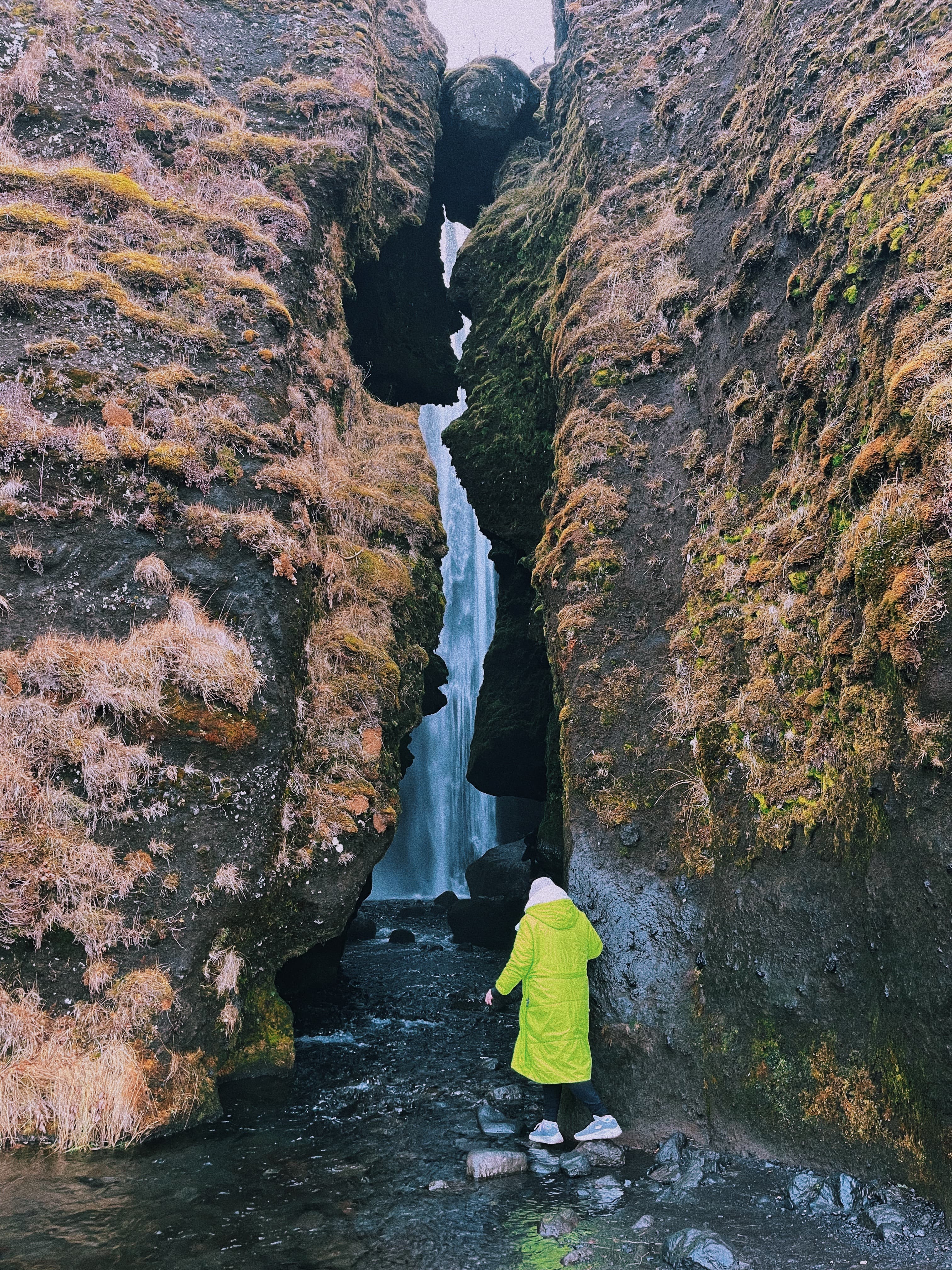 Heading back, we’ll stop at Seljalandsfoss Waterfall—famous for the path behind its curtain of water—and its nearby cousin, Gljúfrabúi Waterfall, hidden in the cliffs and perfect for those looking to escape the crowds.