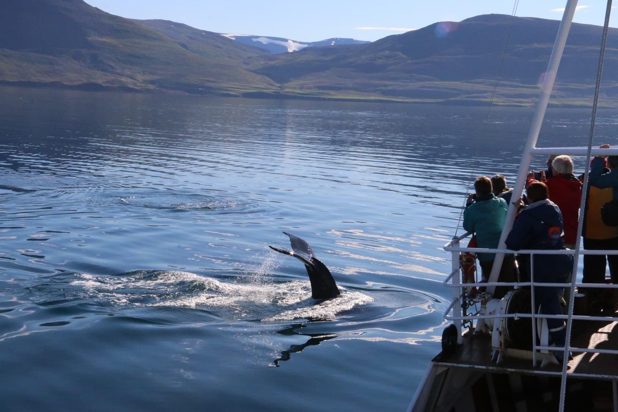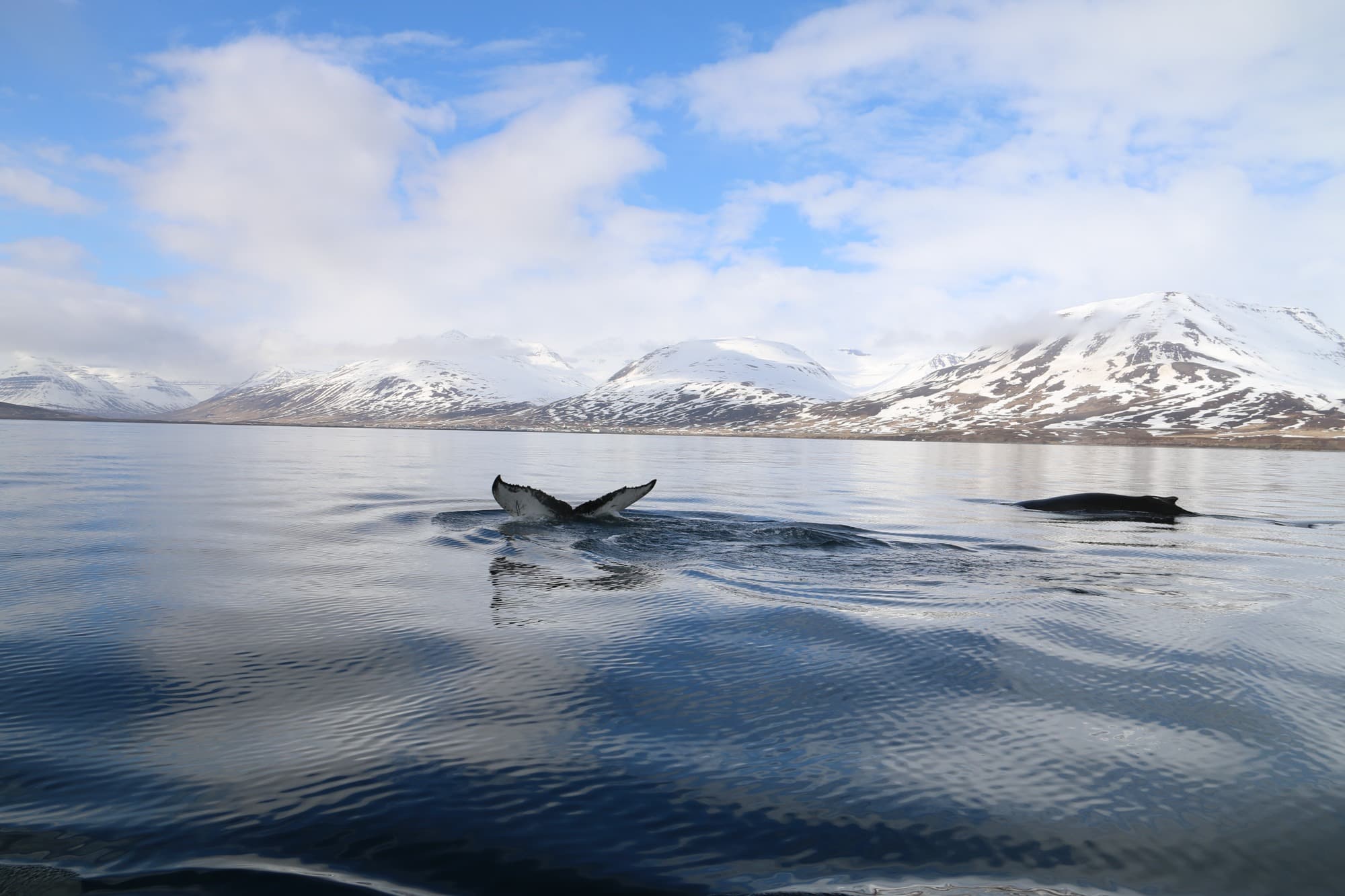 An exciting whale watching tour from Dalvik, located in the North of Iceland, close to Akureyri. This is truly an adventure at sea with an excellent sighting success. On this Whale watching adventure, we sail through the picturesque landscapes of Eyjafjordur Fjord surrounded by the majestic mountains of Tröllaskagi just off the Arctic Circle.