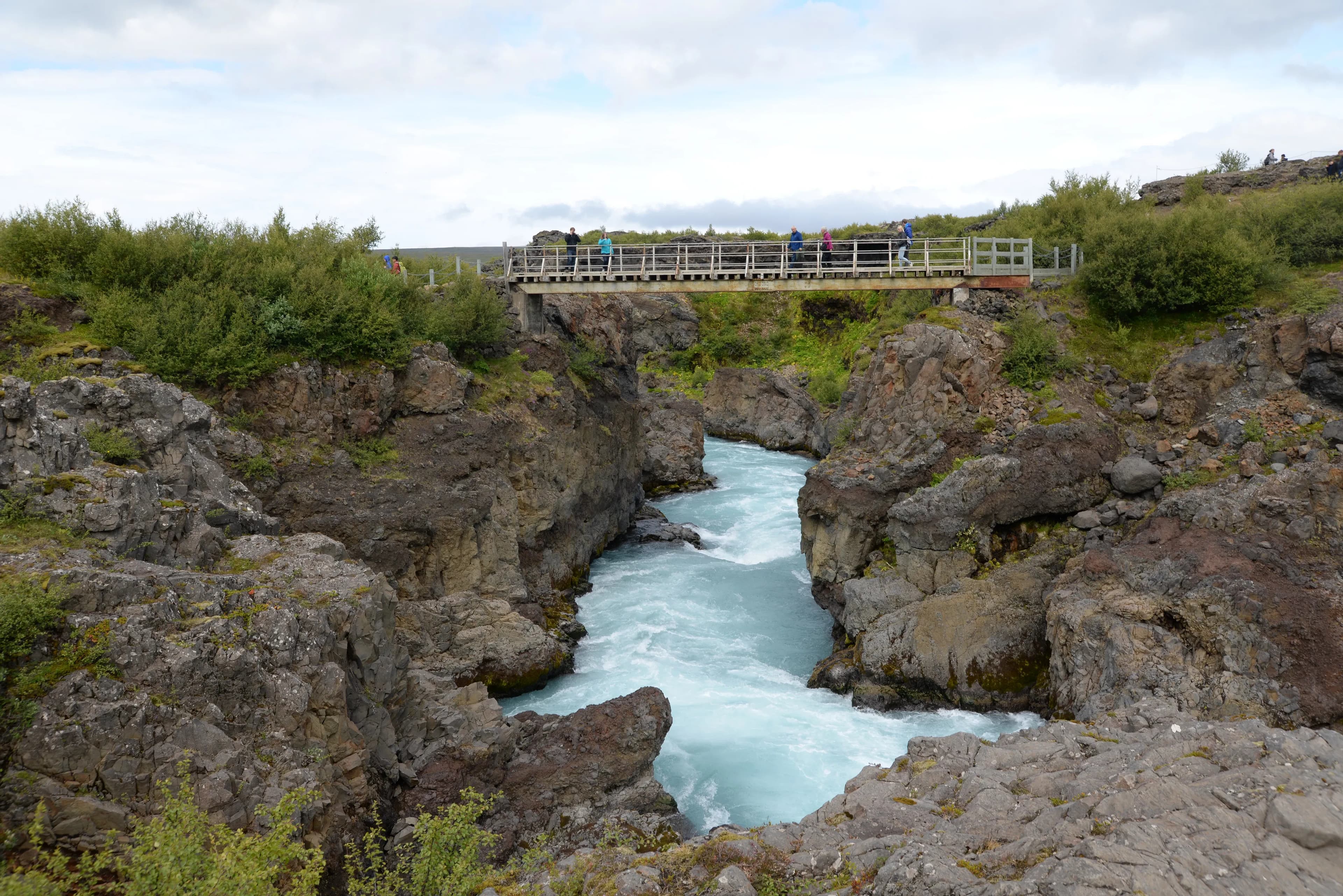- Hraunfossar ("Lava Falls") – A series of crystal-clear rivulets that seem to magically emerge from beneath the Hallmundarhraun lava field, cascading over a wide expanse into the Hvítá river.
