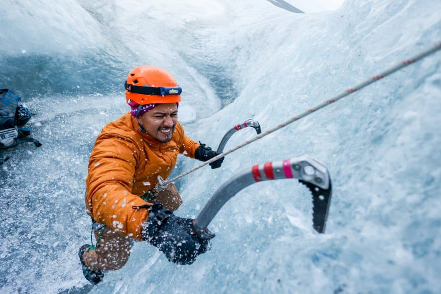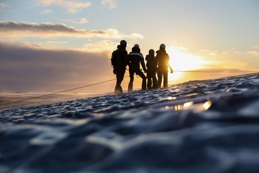 This is the total package when it comes to a fully immersive, private experience on a glacier. Not only will you be able to visit our famous Crystal Ice Cave, but you will also get to challenge yourself with ice climbing on Vatnajokull, Europe’s largest glacier. From beginner to expert-level climbers, all are welcome. We always adjust the tour to our guest’s fitness levels and capabilities, making this a tour that anyone can try with the willingness to push themselves. You will be guided by a fully certified glacier guide who also doubles as a professional adventure photographer. Your guide will make sure to get those epic action shots of you traversing walls of ice, climbing deep glacial holes, and exploring our crystal-blue ice cave.