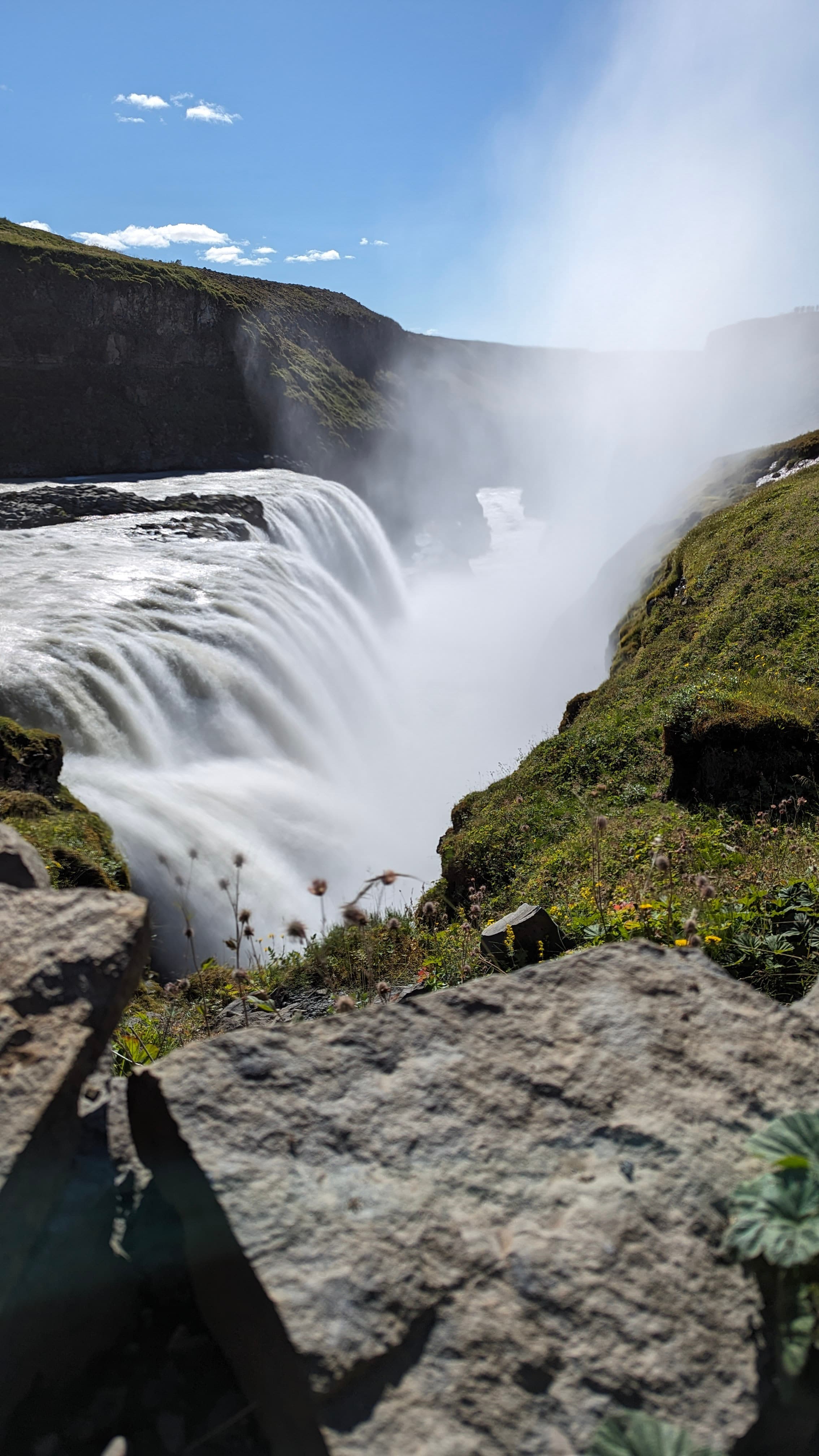 Awe-Inspiring Natural Wonders Marvel at the explosive power of the Strokkur geyser as it erupts every few minutes, sending plumes of steam high into the air. Then, take in the majestic beauty of Gullfoss, the "Golden Waterfall," where the Hvítá River cascades down in a stunning two-tiered drop, creating rainbows on sunny days.