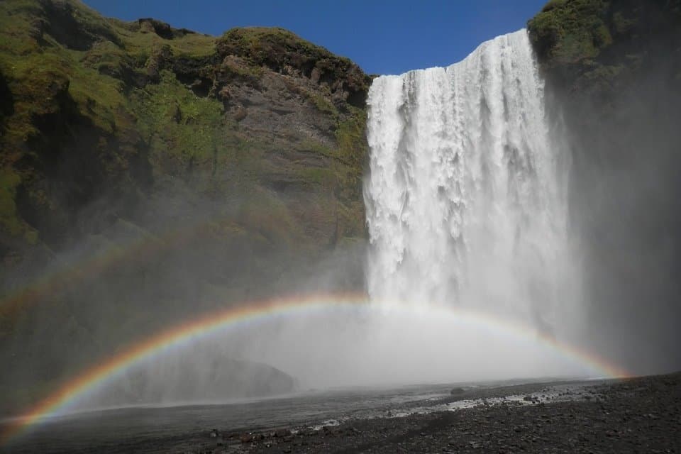 Skógafoss Waterfall Next, visit the mighty Skógafoss, one of Iceland’s largest and most famous waterfalls. The thundering curtain of water creates a mist that often produces vivid rainbows on sunny days, making it a perfect spot for photography. If you’re up for a bit of adventure, climb the stairs to the top of the falls for a panoramic view of the surrounding landscape.