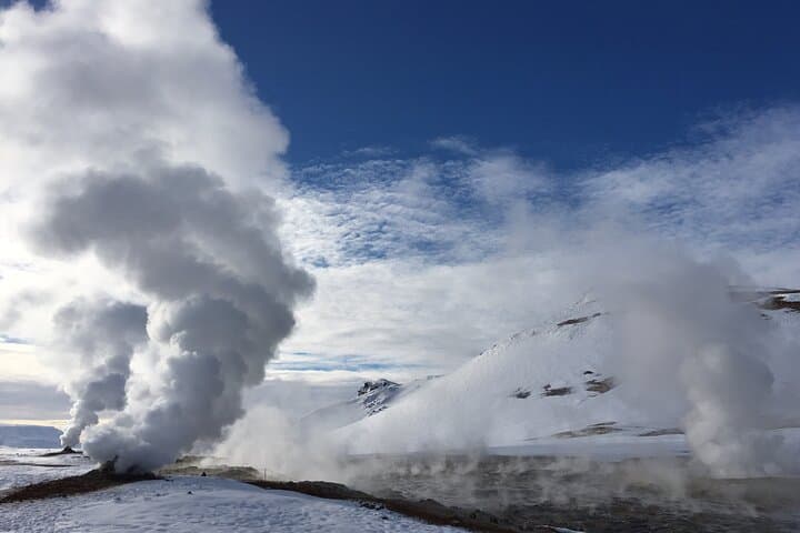 This 4x4 vehicle tour allows you to venture to the Natural Wonders of Lake Myvan, Nature Baths, Goddafoss waterfall AND the spectacular Dettifoss waterfall all in one day on this popular and great value tour with an experienced local guide. We set off from Akureryi stopping at the beautiful Godafoss waterfall also known as 'The Waterfall of the Gods' and then onto the famous Lake Myvatn. In Lake Myvatn we visit popular destinations including the Myvatn Nature baths (optional), a geothermal lagoon with mineral rich water in the middle of lava fields, Skútustaðagígar, the psuedocrater area, with stunning views of the Lake Myvatn area, the Dimmuborgir Lava formations also known as 'The Dark Castle', Game of thrones filming locations, the Mount Námafjall area where you can view the bubbling Hverir Mud pools and Natural steam vents/fumaroles and also the Grjotagja rift and cave. We also visit Dettifoss waterfall, Europes most powerful waterfall (conditions dependant). *Please note the entrance fee to the Nautre Baths is not included* Occasionally Hafragilsfoss waterfall can be added on if conditions and timings allow).