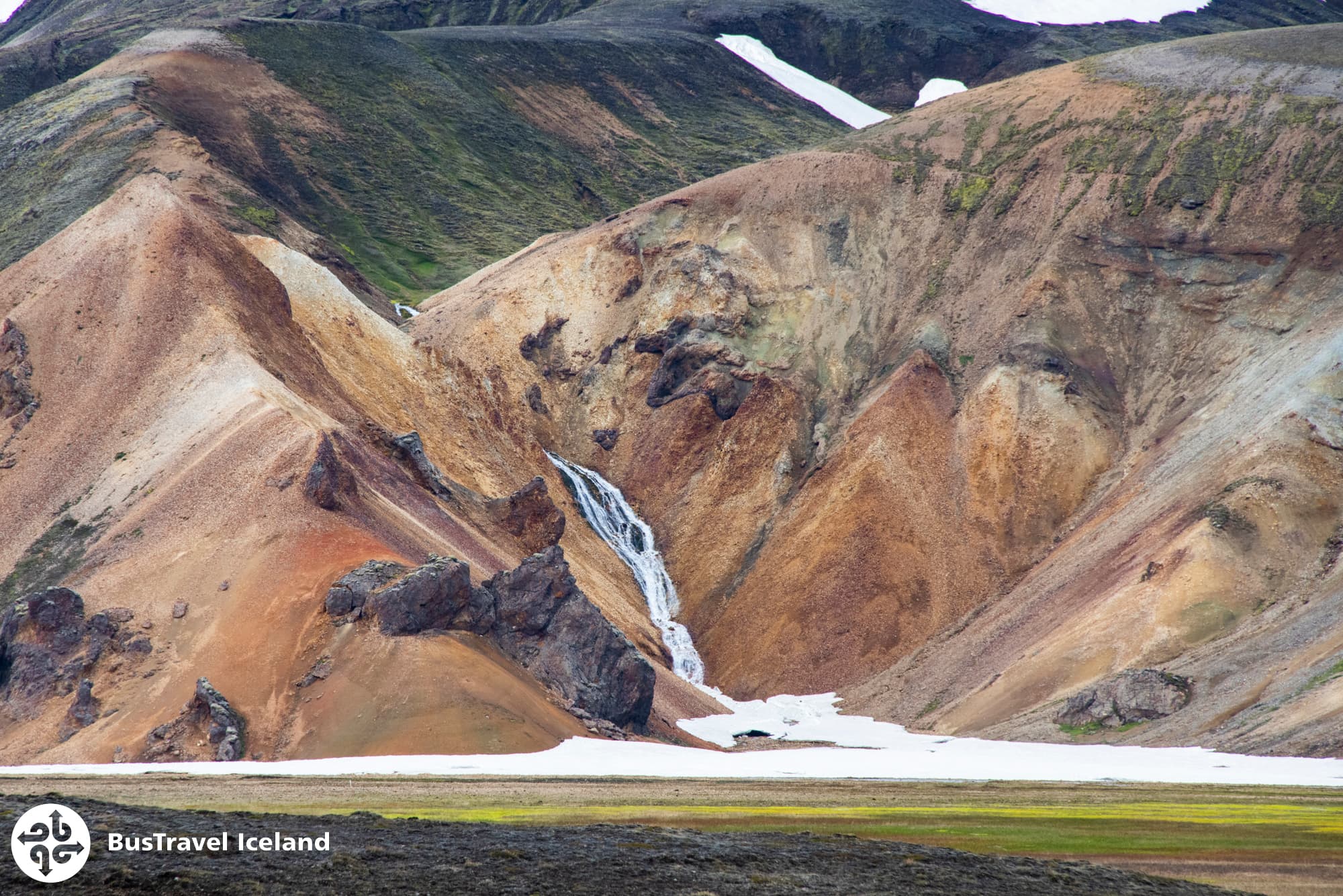 From hiking trails through ancient lava fields and rolling rhyolite hills, bathing in hot-springs to beautiful sites such as Hjálparafoss waterfall and Hnausapollur volcanic crater lake, there is something for everyone on our Landmannalaugar tour. Join us then on our highland bus and visit the beautiful Landmannalaugar.