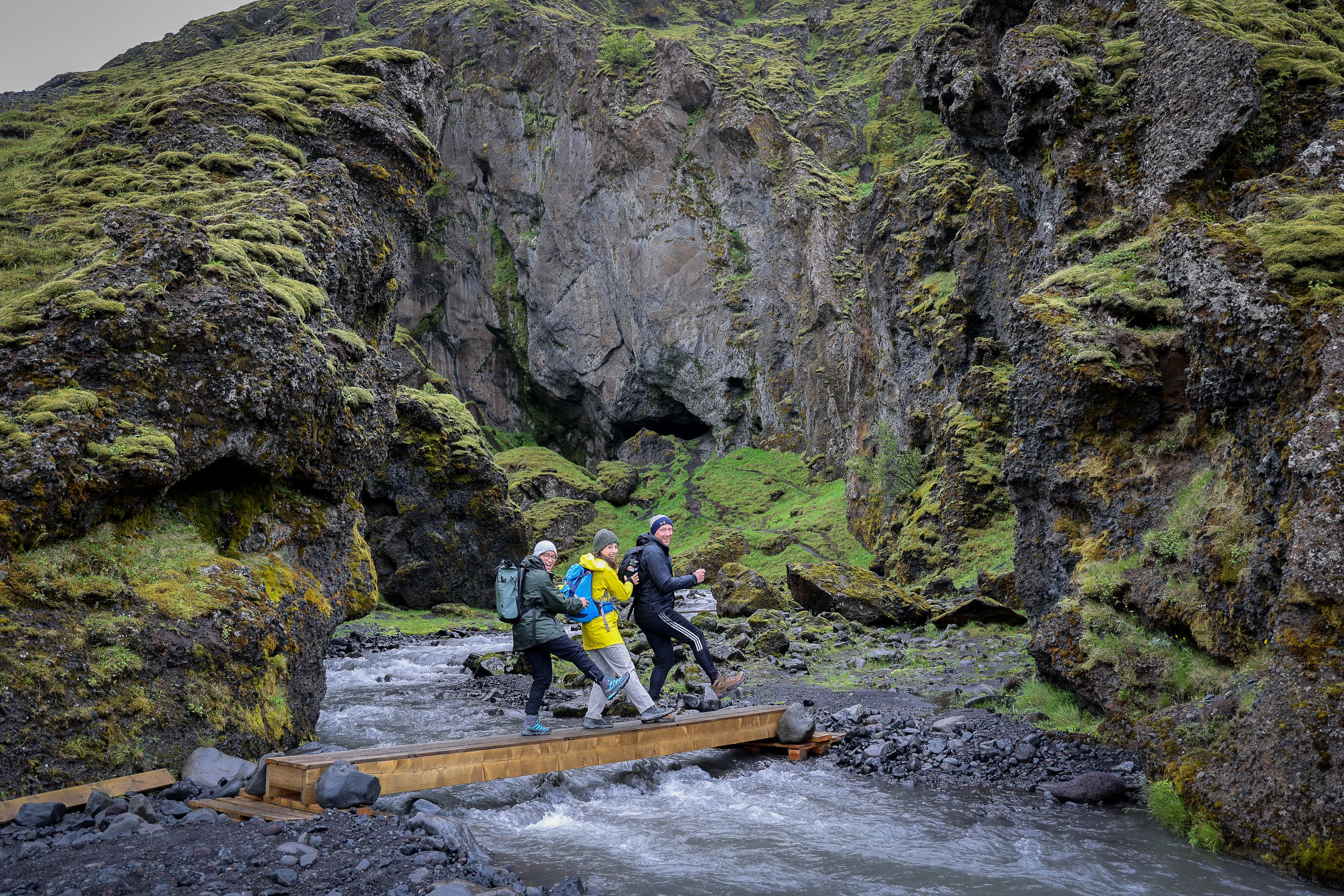Cross rivers in a private 4×4 vehicle into one of Iceland’s most epic places, The Valley of Thor. Situated underneath two massive glaciers and an active volcano, Thórsmörk will showcase these dramatic features with a hike up to Valahnúkur, one of the most breathtaking viewpoints in the country. Lunch will be enjoyed at Langidalur Hut at the foot of the mountain to feel the true vibes of the Icelandic summer. Stops will also be made into the valley’s deep canyons and hidden caves, a secret waterfall, and the edge of the massive Gígjökull glacier.