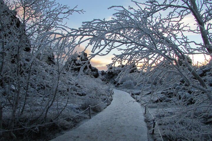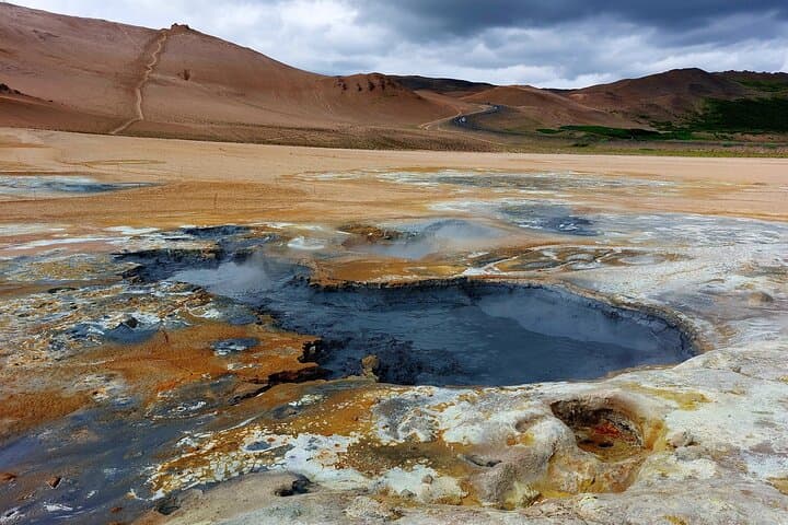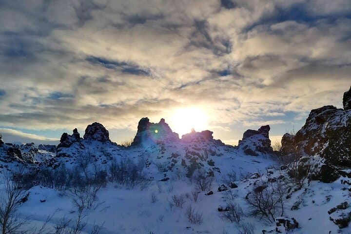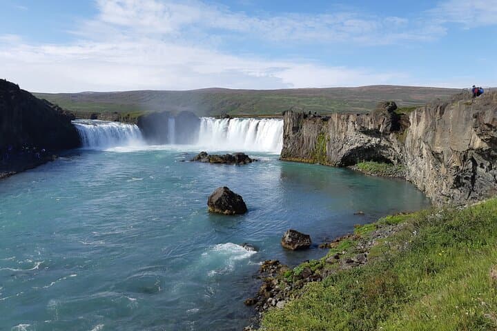 Our guides are fully qualified and have extensive knowledge of the Lake Myvatn area. Not only will you learn about the history, landscape and present day life, on this tour you will also hear about Icelandic folktales, humor and culture. This is a total 6 hour tour trough some of the most picturesque landscape in North Iceland. All travel time is included in that length. After about 35 minute drive from Akureyri we come the beautiful waterfall Goðafoss. We stop here for a good time for you to enjoy the scenery before we continue our drive to Lake Myvatn. After around 30 minute drive from the waterfall we come to Lake Myvatn itself and our first stop is at Skutustadir, Psuedo Craters. We then stay in the area for around 3 hours with many different stops during the day like at Dimmuborgir lava field, Grjotagja cave and Namaskard fumerols. At the end of the day we drive for an hour and 15 minutes back to Akureyri.