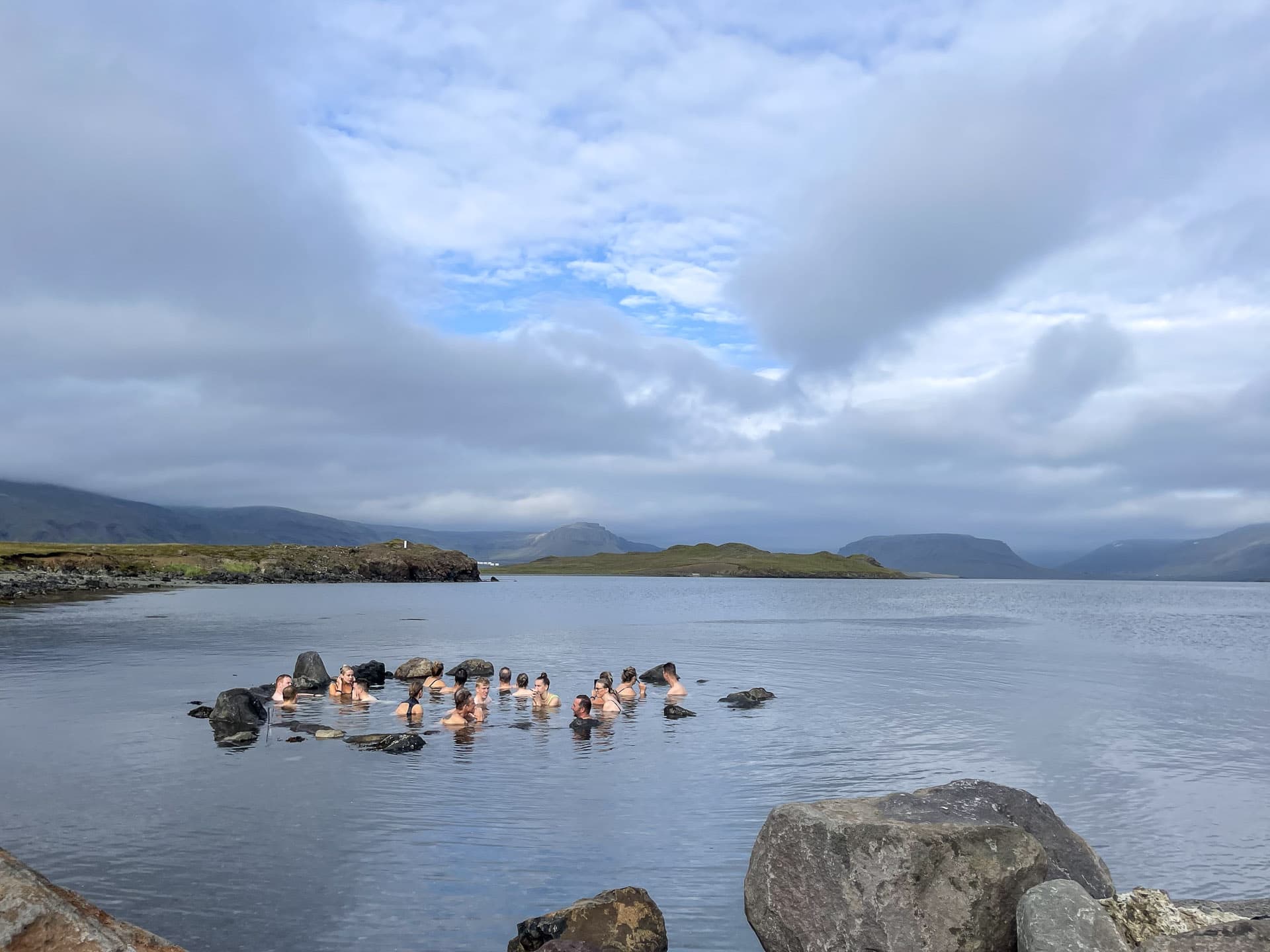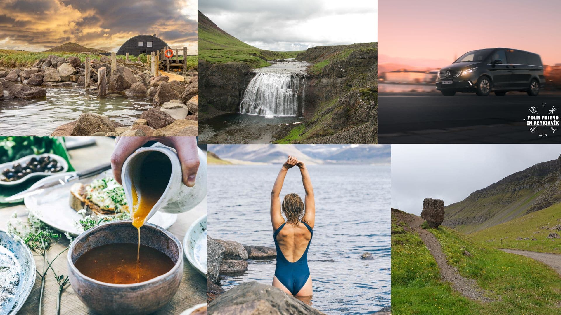 This is Private Driving Tour to Hvalfjordur & Hvammsvik Hot Springs You are picked up for this experience by an expert local driver guide from Your Friend In Reykjavik. After a roughly 25-minute drive out of Reykjavik, we say hello to Mount Esja, the guardian of Reykjavik, and enjoy the views before heading towards a waterfall called Þórufoss, made famous in the TV series, Game of Thrones. After that possible shortstop, you enter the beautiful fjord called Hvalfjordur or Whalefjord, where you can admire the views. At the same time, you are told all about the significant history of these parts and the folklore connected to the area. And then it's time for our second shortstop, an Elfstone or home called Steðji, where an Elfman called Staupasteinn is said to reside. When we have heard enough elf stories, it's time to head to the brilliant Hvammsvik Hot Springs, which is a beautiful experience where you have access to eight natural hot springs that evolve into the ocean with temperatures ranging from ocean temperatures (around 10 °C) to 42°C in the old original hot spring. You can even access the sea, Steam baths, and hot outdoor showers to warm you up if you are brave the ocean. This experience was recently voted as the number one thing to do in the world by Timeout magazine! After your rejuvenating soak in the hot springs, it's time to head to Höfuðstöðin, the restaurant to enjoy a nice bowl of delicious lamb soup. With the Lamb soup, you get fluffy Sourdough bread & butter with sea salt, also made on location. Now it's time to head back to your accommodation with a nice warm feeling in your body and belly. All additional activities that extend the tour duration will incur separate charges. Examples of such activities include visiting the Blue Lagoon, glacier hiking, snowmobiling, and similar excursions. Additionally, the tour price will increase for each hour added beyond the standard duration of the tour.
