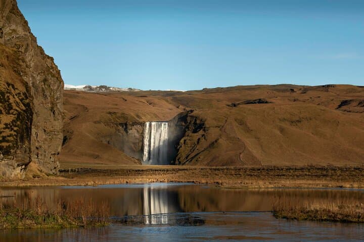 This tour takes you to an amazingly beautiful area that is filled with contrasts. First of all, with volcanoes hidden under glaciers, and traces of their past activity visible everywhere, you will understand why Iceland is nicknamed "The Land of Fire and Ice". But the contrast can also be seen in the colors of the South Coast. The Whiteness of the glaciers is striking as it meets the blackness of the volcanic sands and ashes, with Sólheimajökull being the best example of it. The other colors on this black canvas come from the green moss and the blue ocean.