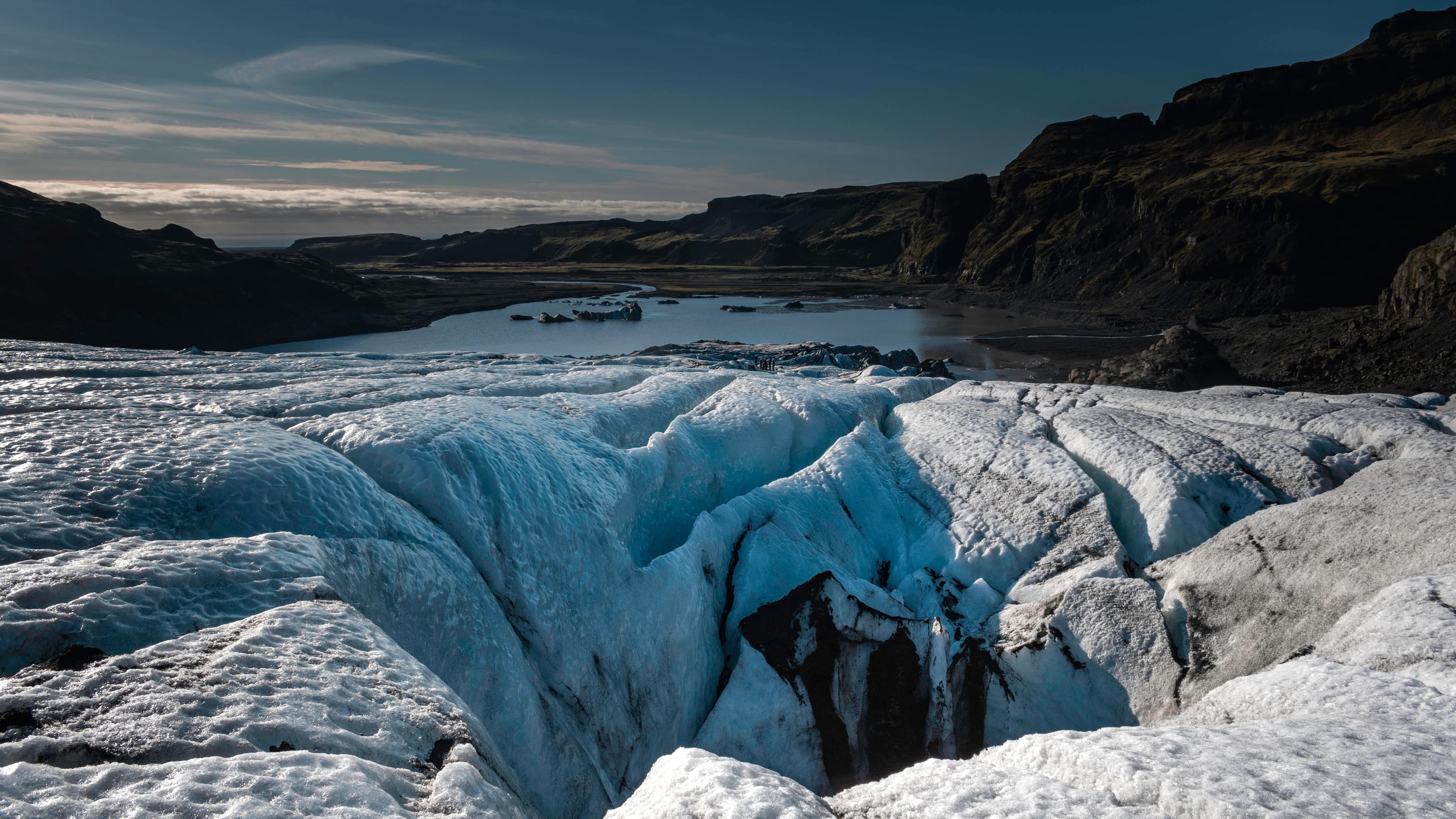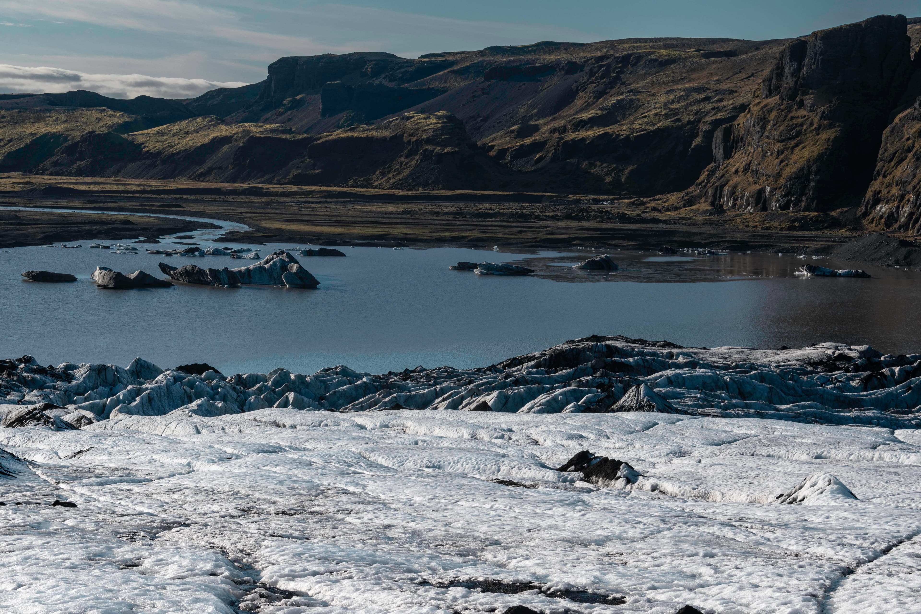 The very best part of the day: Hiking on a glacier. We will go on the glacier of Sólheimajökull, an outlet glacier of Myrdalsjökull.