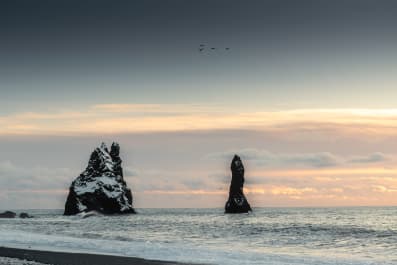 The most famous Black Sand Beach in Iceland. It is the home of a small puffin colony during summer time, and displays incredible geological features, among which are sea stacks and basaltic columns.