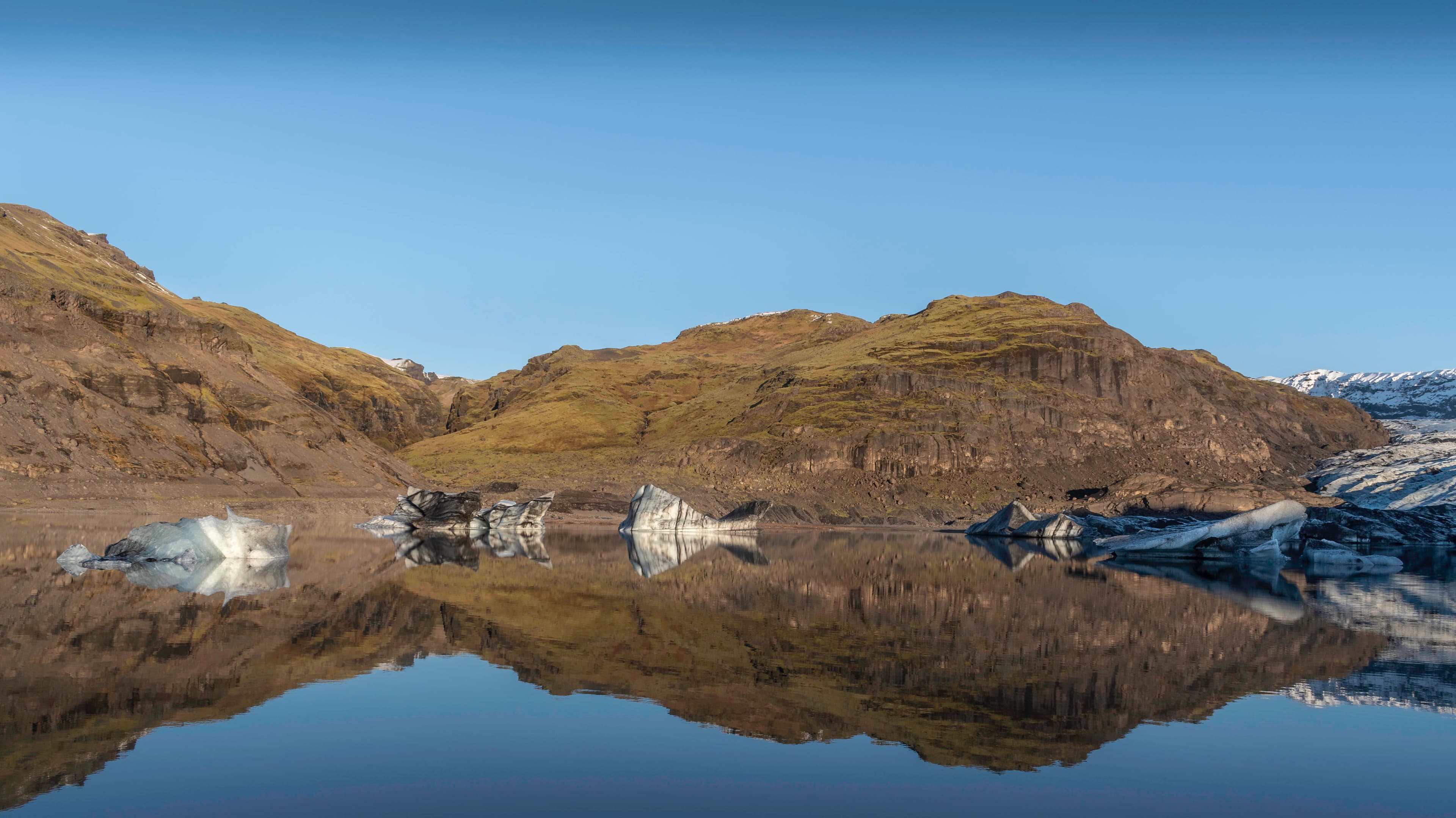 All the glaciers on the South Coast of Iceland: Eyjafjallajökull, Myrdalsjökull, and Vatnajökull are home to some of the mightiest volcanoes in the country. And it shows! Volcanic ashes, and black sands are always present and visible, even on the glacier of Sólheimajökull.