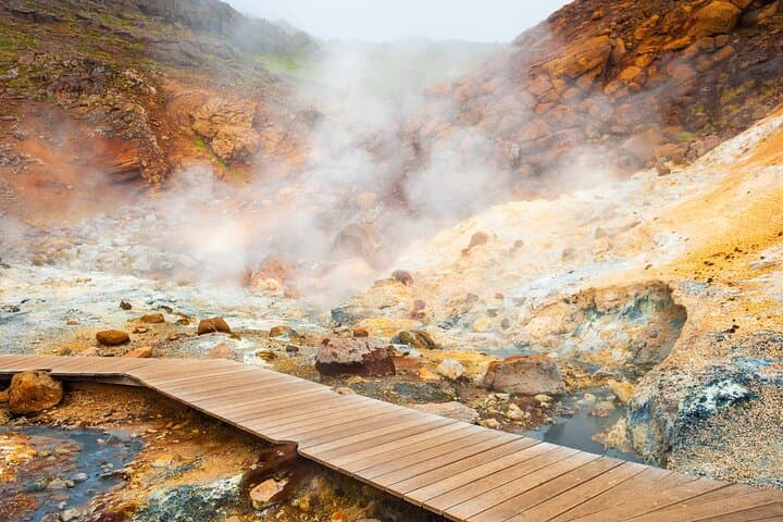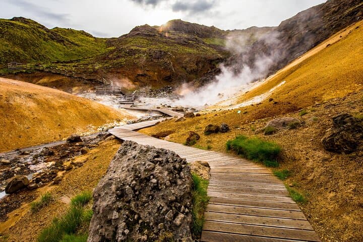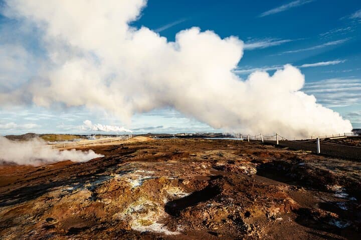 Explore geothermal wonders of the Reykjanes Peninsula,visit the charming fishing village of Grindavik,straddle the boundary between two tectonic plates, visit rugged coastline you might spot puffins